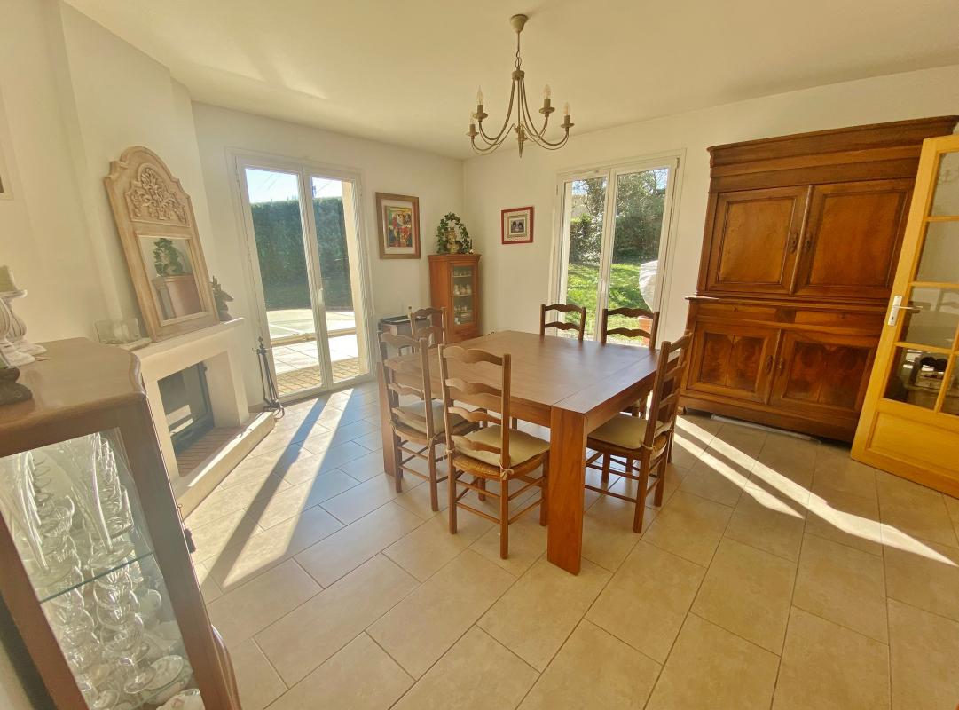Au rez-de-chaussée : un salon avec plafond cathédrale, une salle à manger avec cheminée, une grande cuisine ouverte sur le jardin, ainsi qu'une chambre de plain pied et toutes les commodités (une salle d'eau avec WC, cellier, buanderie, atelier, rangements, ...). À l'étage : 4 chambres, un grand dégagement, salle de bain et WC séparés.
