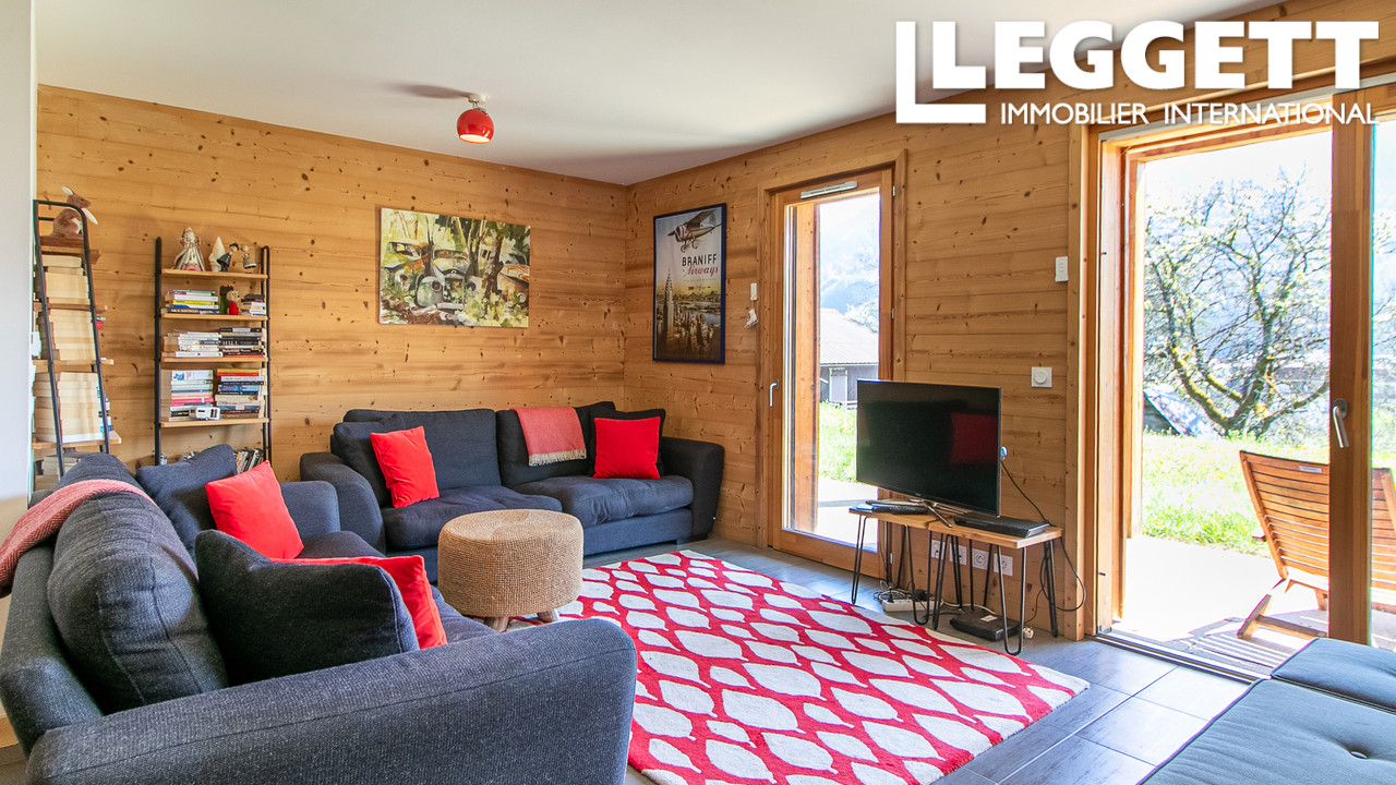 A44285JST74 - Construit en 2014 et idéalement situé à quelques pas du centre de Samoëns, ce lumineux appartement en rez-de-chaussée se trouve dans un quartier calme et très recherché du village.
