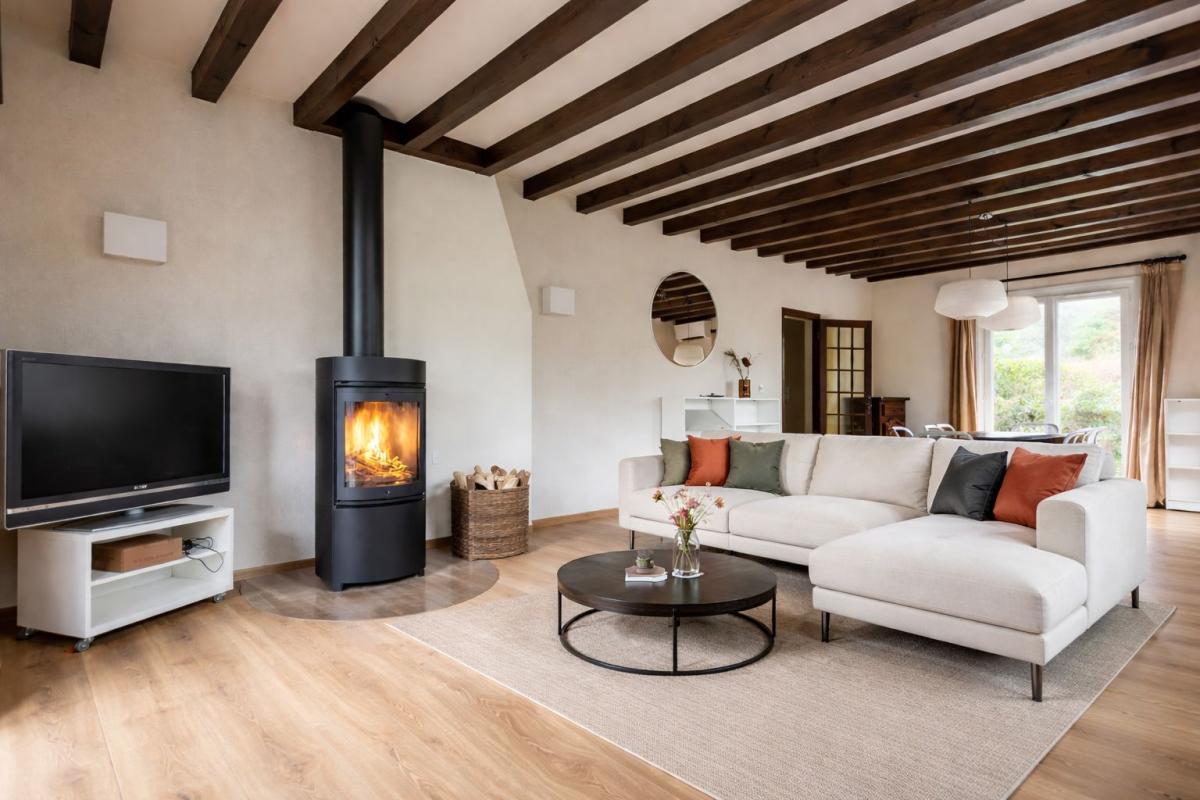 Le rez-de-chaussée propose une organisation fonctionnelle avec un espace salon/séjour équipé d'un insert bois, une salle à manger séparée et une cuisine indépendante. Ce niveau comprend également deux chambres, une salle de bains confortable et un WC.