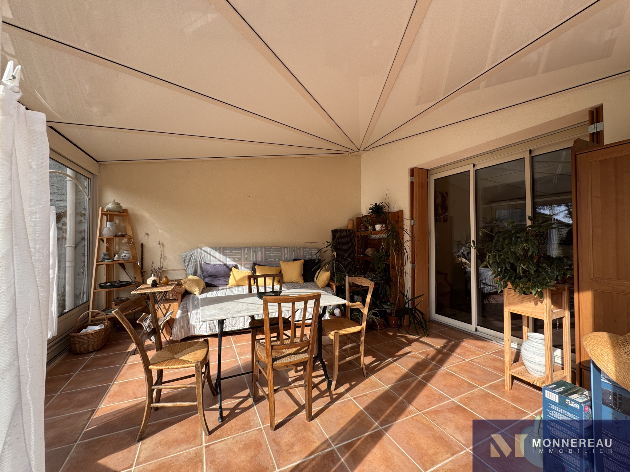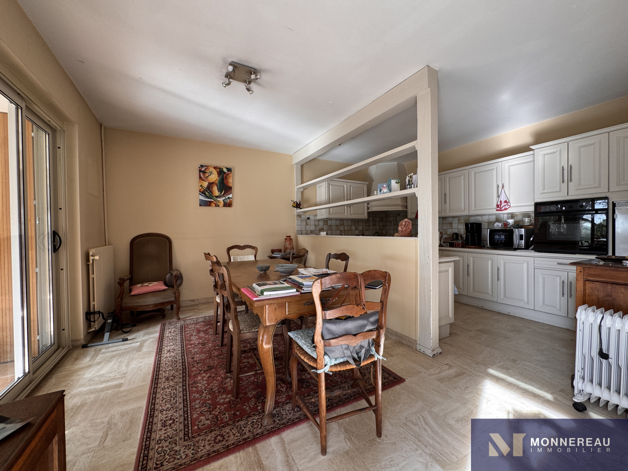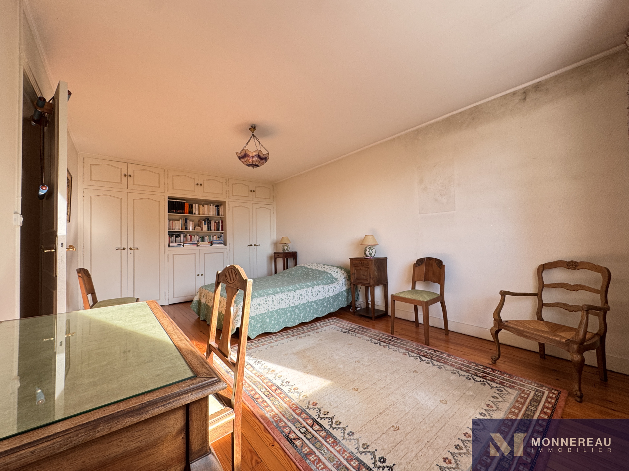 BARBEZIEUX (16) En coeur de ville, à proximité immédiate des commerces, écoles et du château, cette maison d'environ 210 m2 habitables offre un cadre de vie agréable et lumineux. Au rez-de-chaussée vaste séjour avec baie vitrée et partie salon avec cheminée. Grande cuisine prolongée par une véranda ouverte sur le jardin. Grand bureau à l'entrée qui peut être parfait pour une chambre et une vie de plain-pied. L'étage dessert trois grandes chambres dont une avec dressing, une salle de bains et une salle d'eau. Exposition Ouest avec vue dégagée sur la campagne environnante et les coteaux de Barret. Des travaux de modernisation sont à prévoir. Cave. Le jardin, arboré et sans vis-à-vis, invite à la détente. Au fond du terrain, un atelier avec cheminée, édifié au-dessus du garage, complète l'ensemble et offre de multiples possibilités d'aménagement. C'est idéal pour une vie de famille alliant à proximité des services.