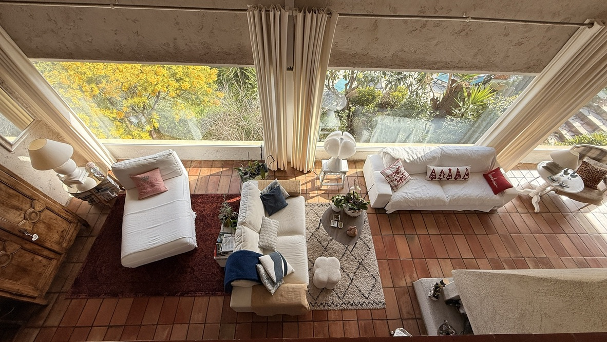 Une mezzanine surplombe le séjour et peut être aménagée selon les besoins.