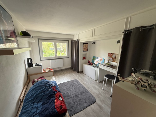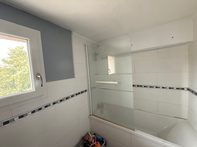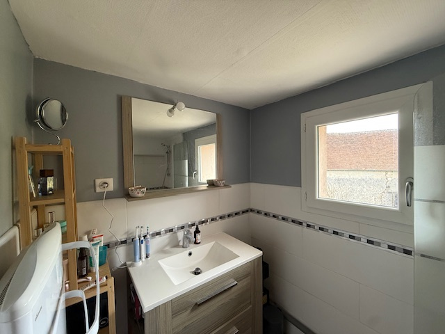 Au 1er étage : pièce palière desservant deux chambres, salle de bains, wc.