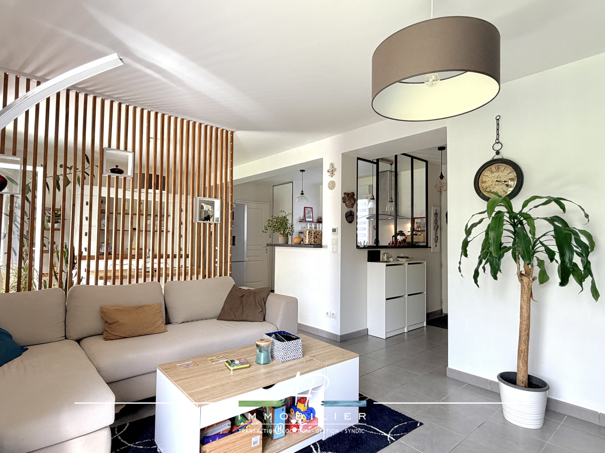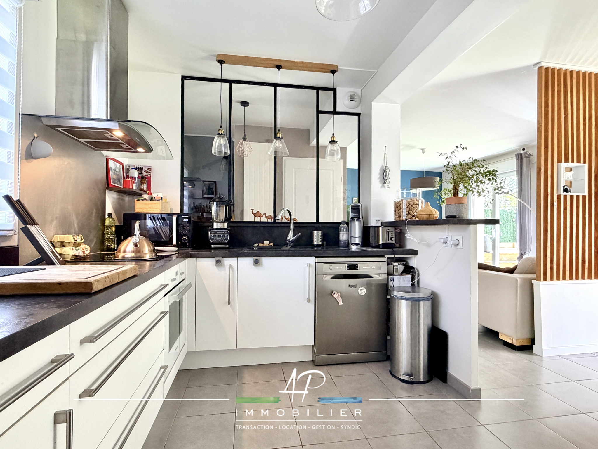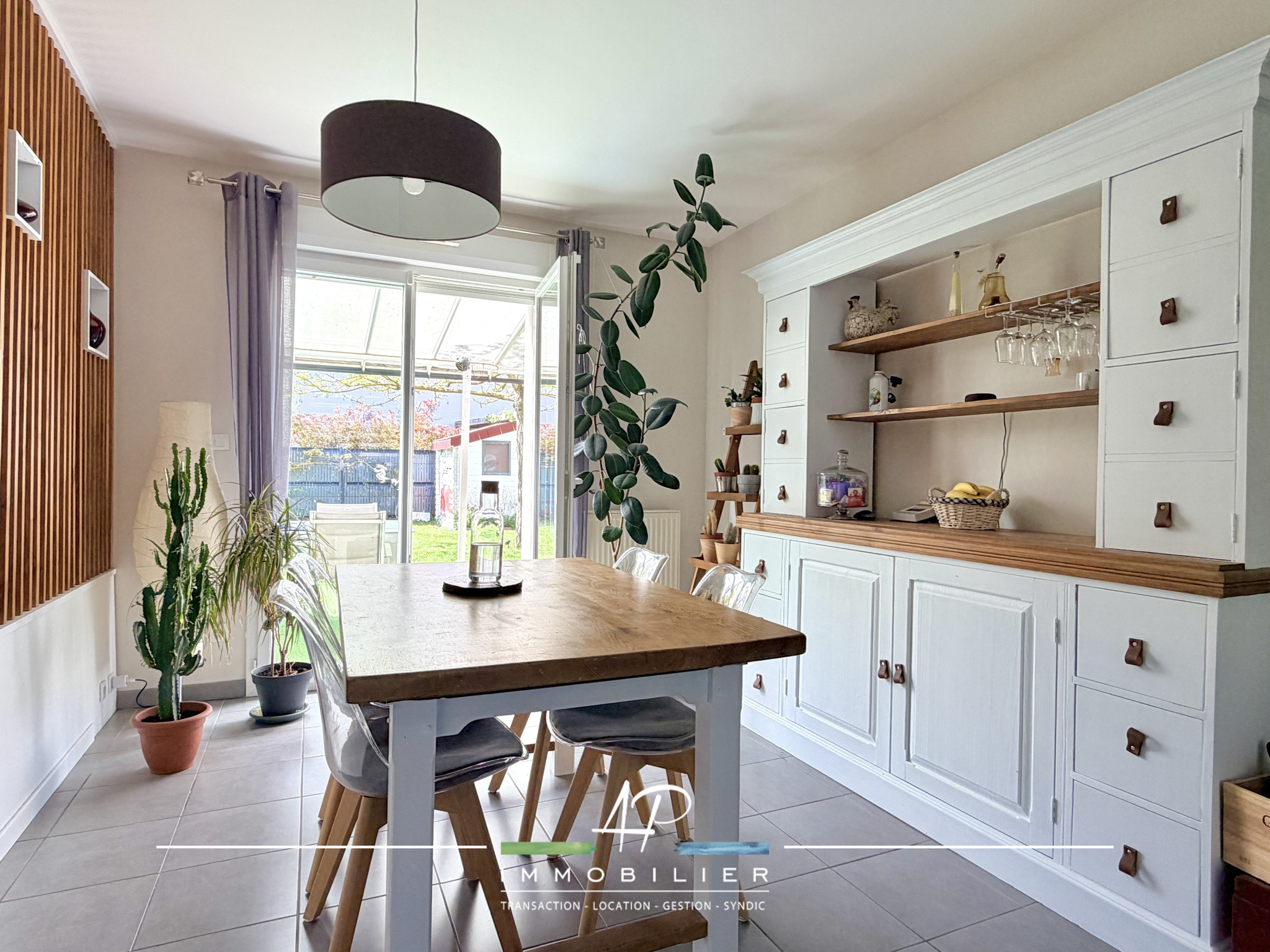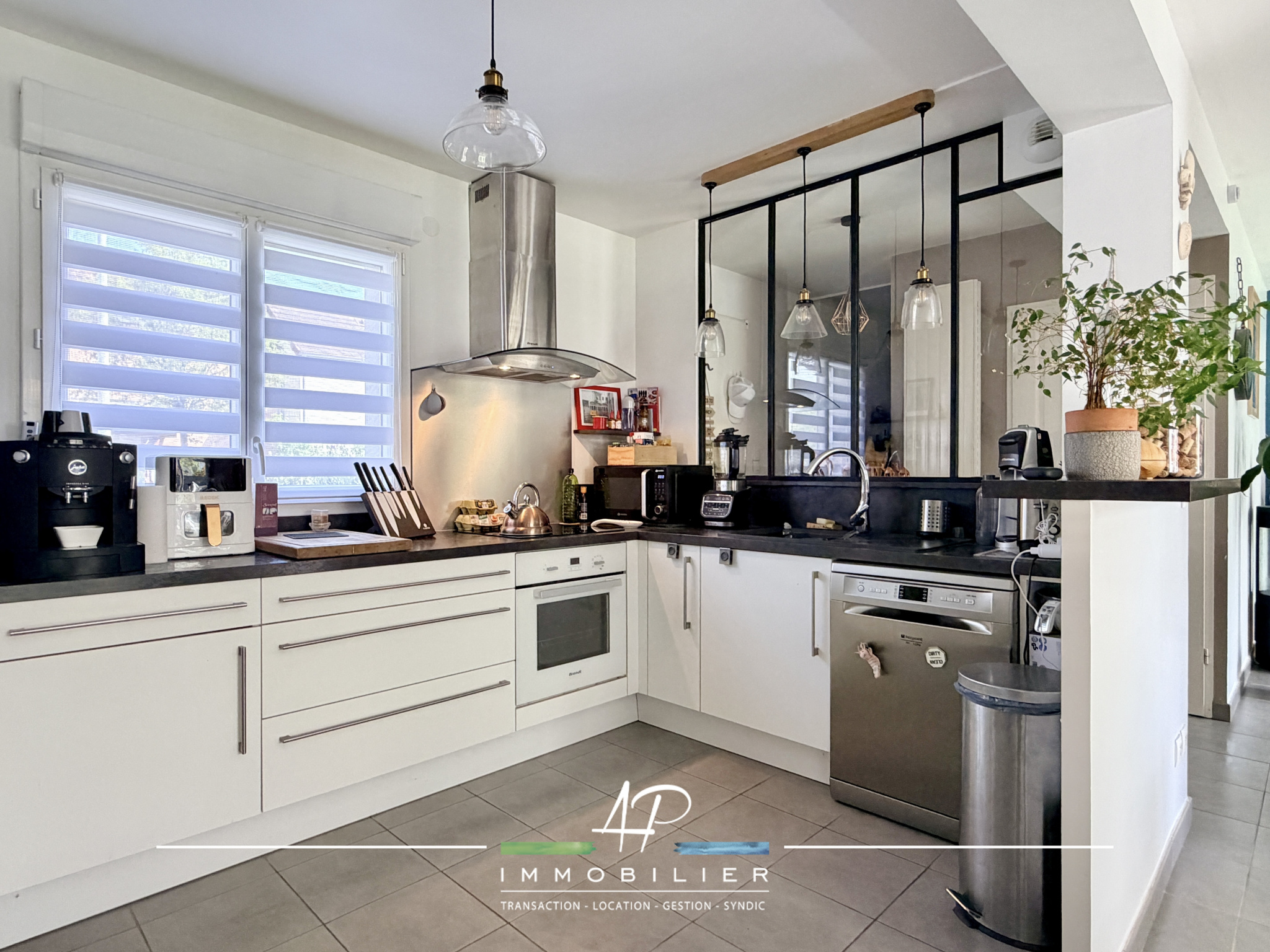 Fonctionnelle et baignée de lumière, cette maison offre une organisation fluide et agréable au quotidien. Le rez-de-chaussée se compose d'un hall d'entrée, d'une cuisine équipée ouverte sur un bel espace salon/séjour avec un accès direct au jardin, créant une vraie continuité intérieur/extérieur. Vous trouverez également un wc, un espace buanderie ainsi qu'un garage actuellement aménagé en atelier et cellier, apportant un confort de rangement appréciable.