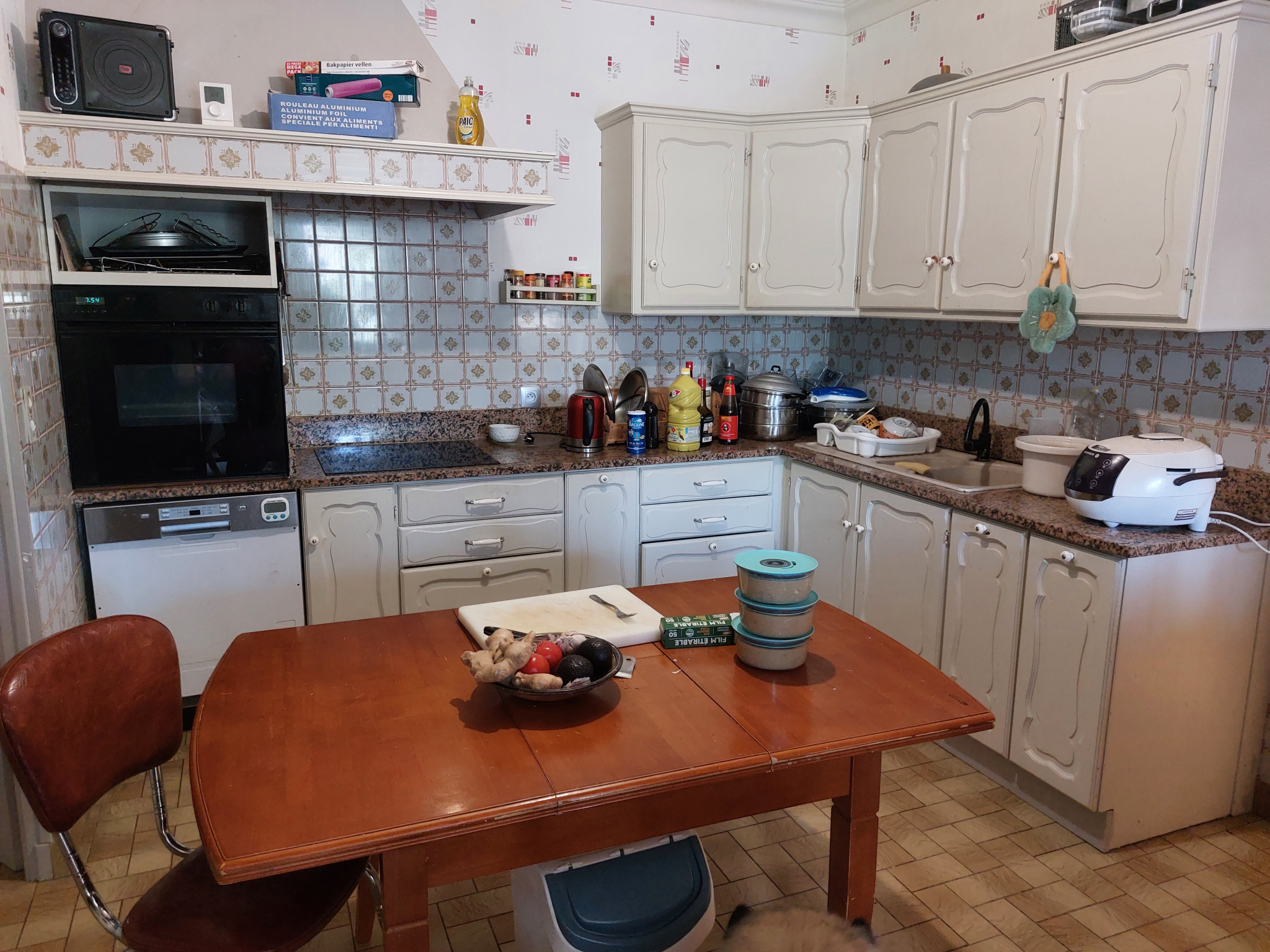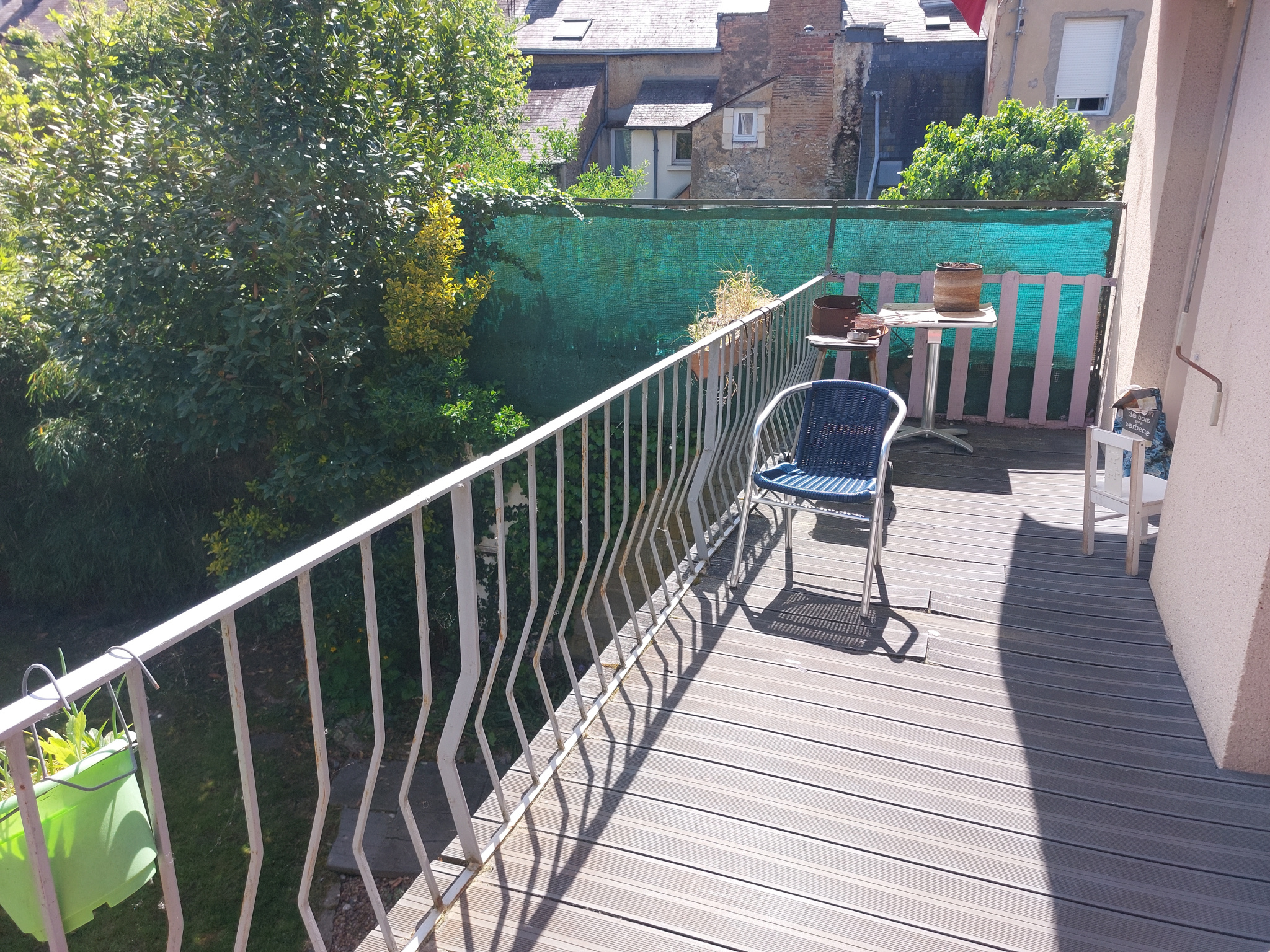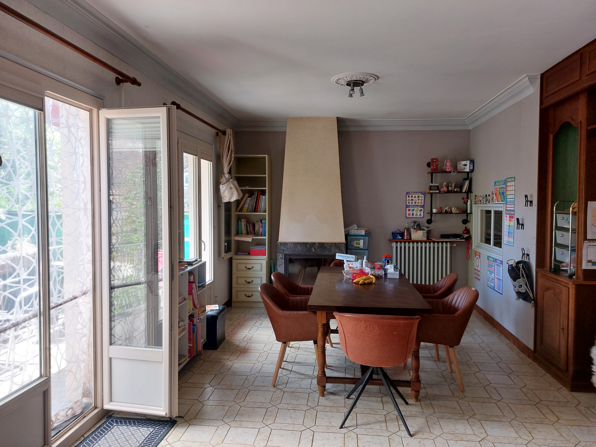 Petit hall d'entrée avec escalier, grand salon, bureau, salle d'eau, WC séparé, séjour avec balcon, cuisine aménagée et équipée.