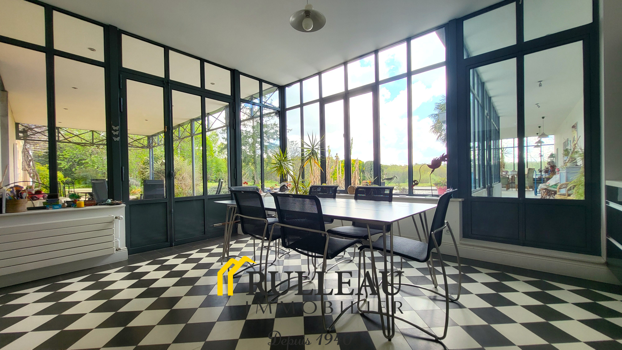 Dès l'entrée, le ton est donné avec de beaux volumes et une distribution fluide des espaces qui invitent à la découverte, la maison développant environ 310 m2 habitables au coeur d'un parc de plus de 4 600 m2. Le rez-de-chaussée propose une succession de pièces de réception chaleureuses et lumineuses comprenant un salon séjour, une salle à manger conviviale, une bibliothèque pleine de charme ainsi qu'une salle de billard, autant d'espaces pensés pour recevoir et profiter pleinement du cadre de vie. La cuisine, spacieuse et fonctionnelle, prolonge cette atmosphère accueillante et s'ouvre sur une superbe verrière baignée de lumière naturelle, véritable pièce signature de la propriété.
