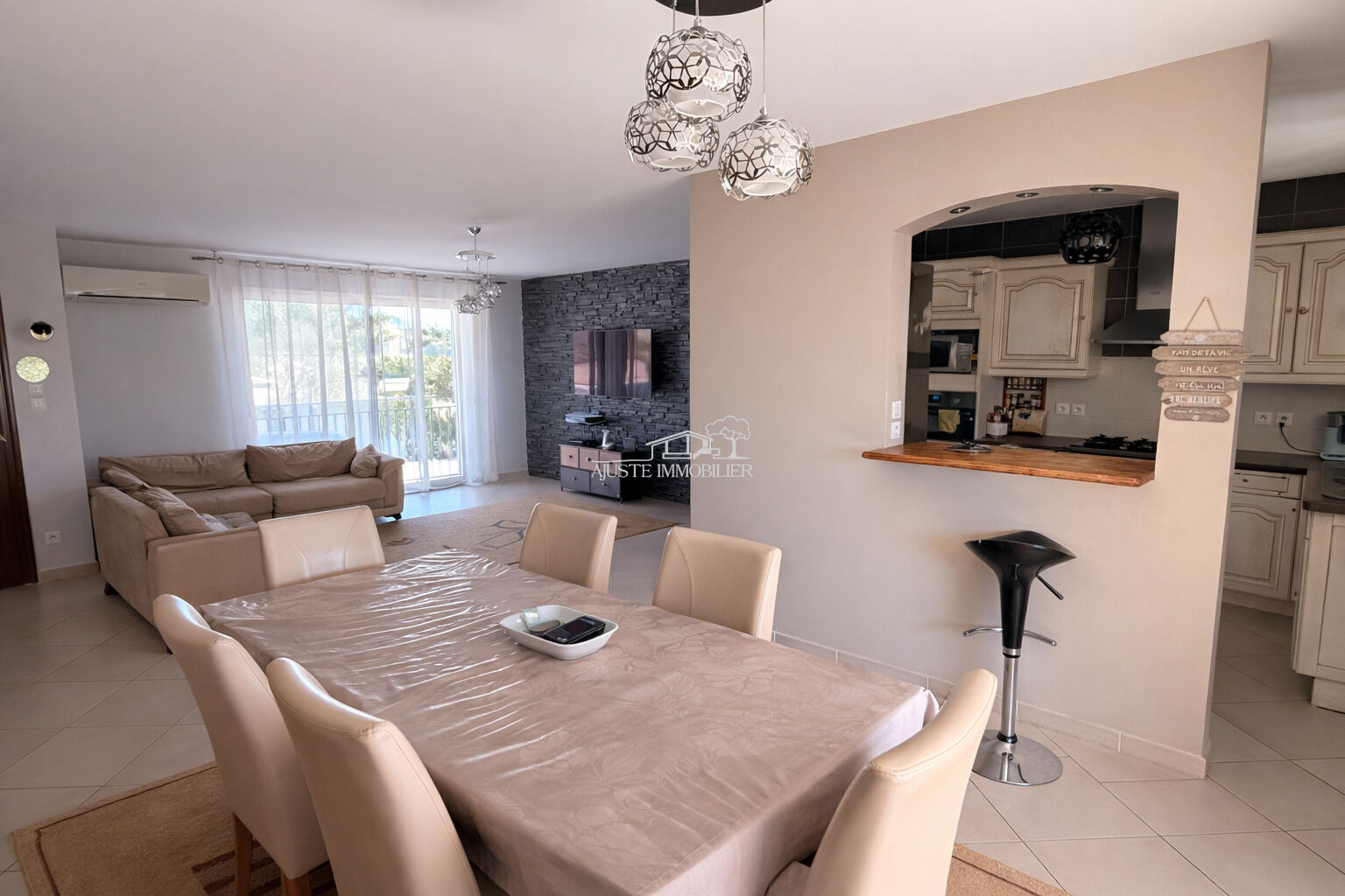 Vous découvrirez un bel espace salon/séjour climatisé, ouvert sur la cuisine, offrant un ensemble convivial et lumineux, avec un accès direct à une terrasse de 25 m², parfaite pour vos moments en extérieur.
