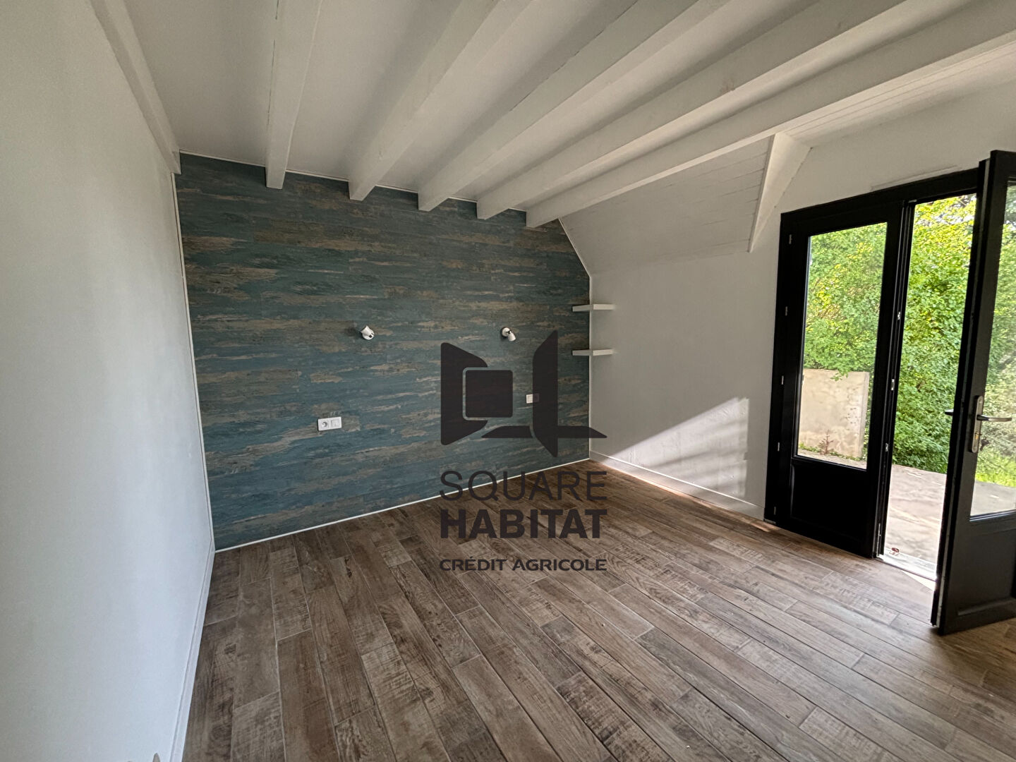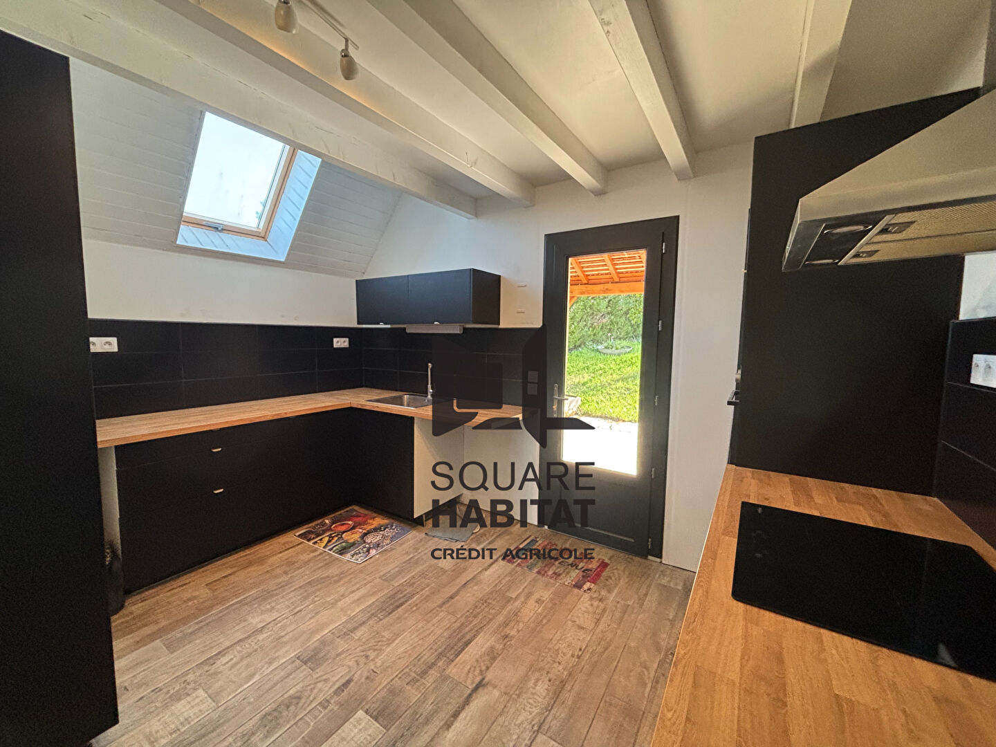 Dès l'entrée, vous trouverez un salon-séjour avec un poêle à bois, une cuisine aménagée et équipée avec un accès à une terrasse abritée. Une chambre de plain-pied ainsi qu'un WC complète ce niveau.
