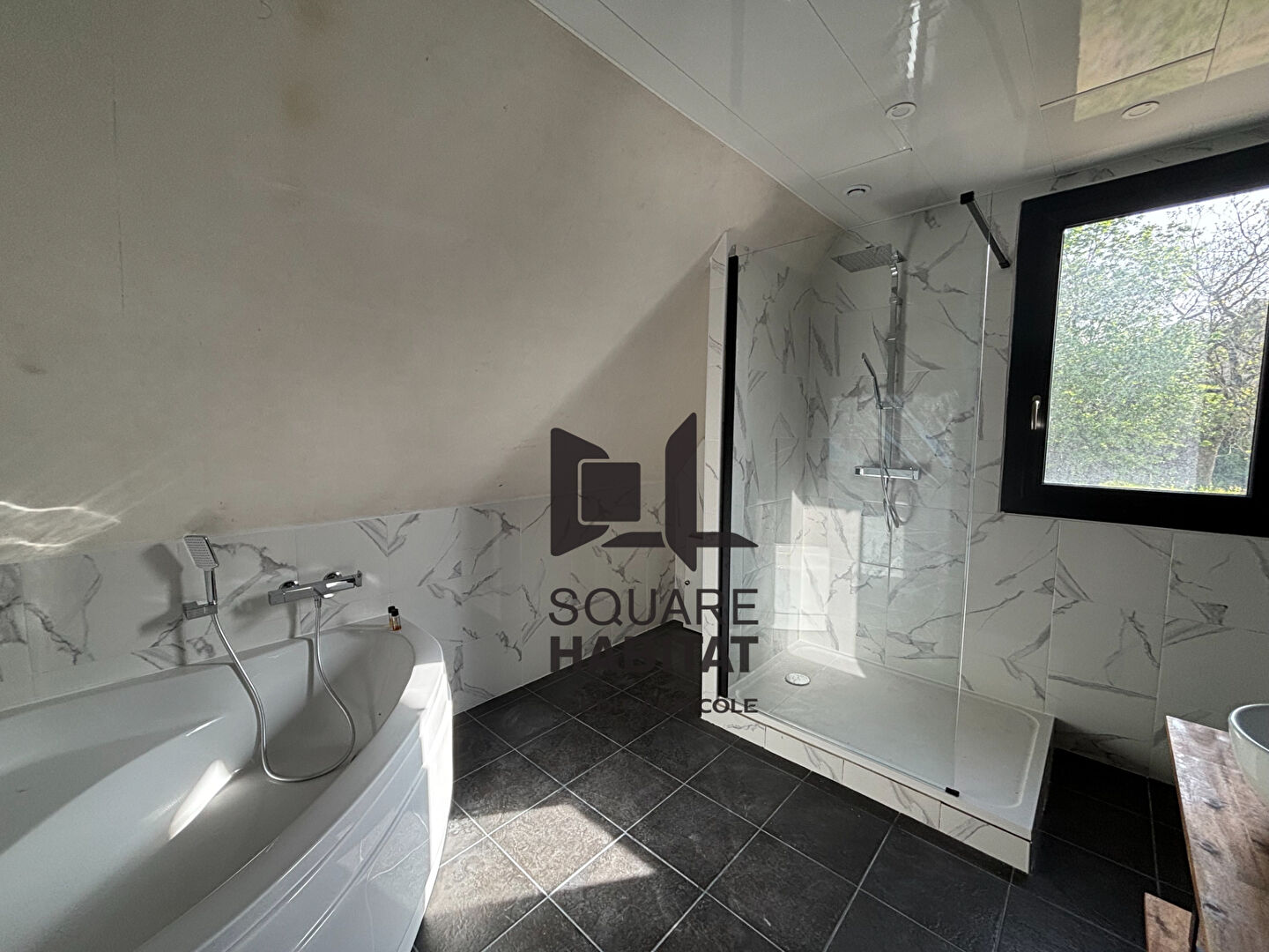 À l'étage, l'espace nuit se compose de deux chambres, un bureau, ainsi qu'une salle de bains avec douche et baignoire.
