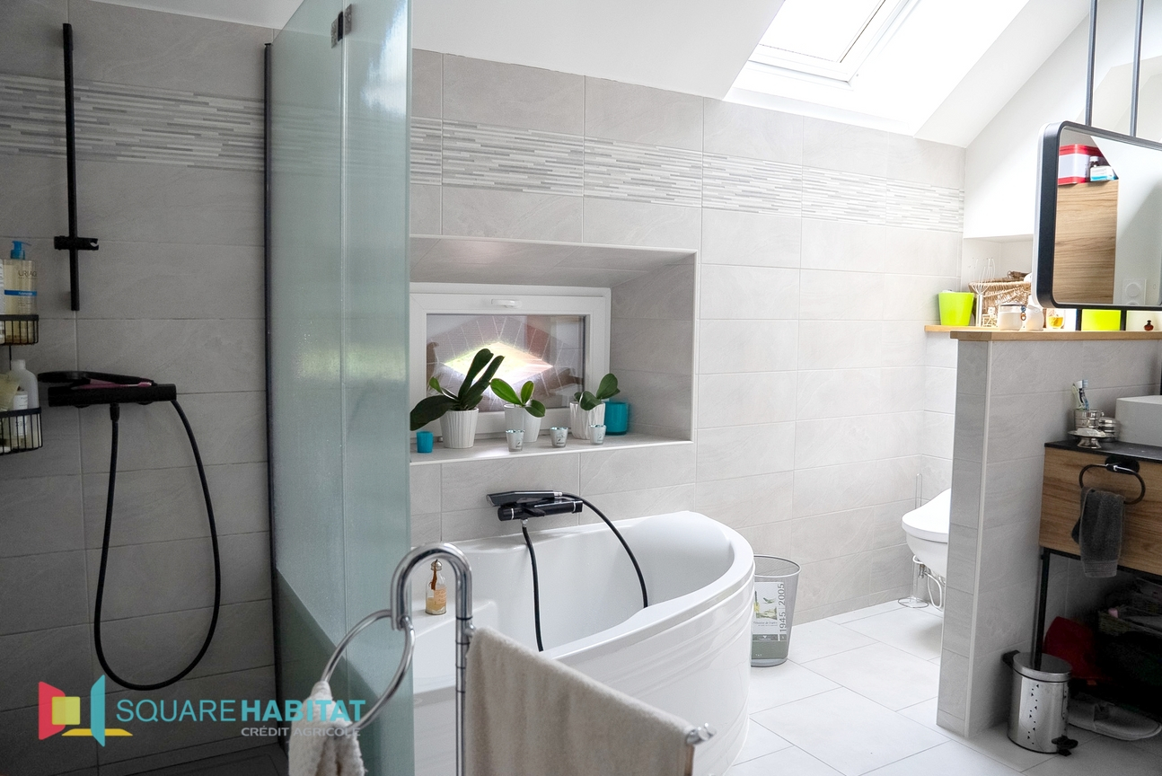 À l'étage, deux chambres ainsi qu'une salle de bains avec WC complètent ce logement.