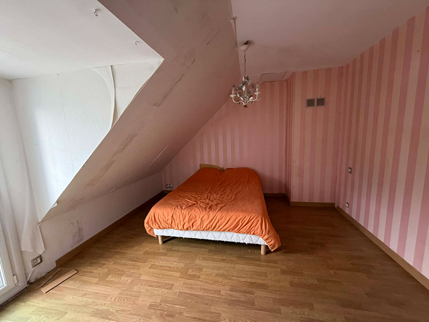 A l'étage, une chambre, une autre en effilage, un dressing et une salle d'eau.