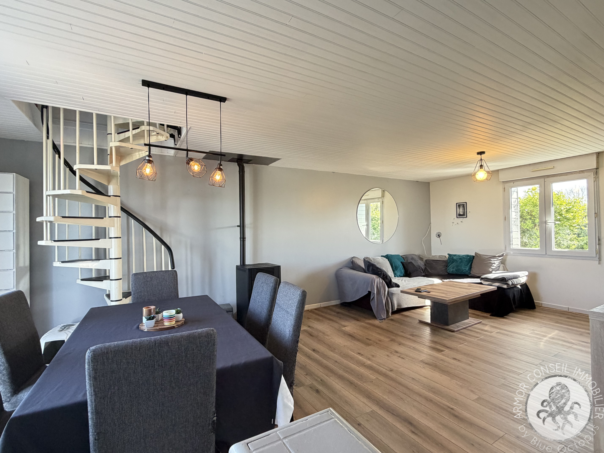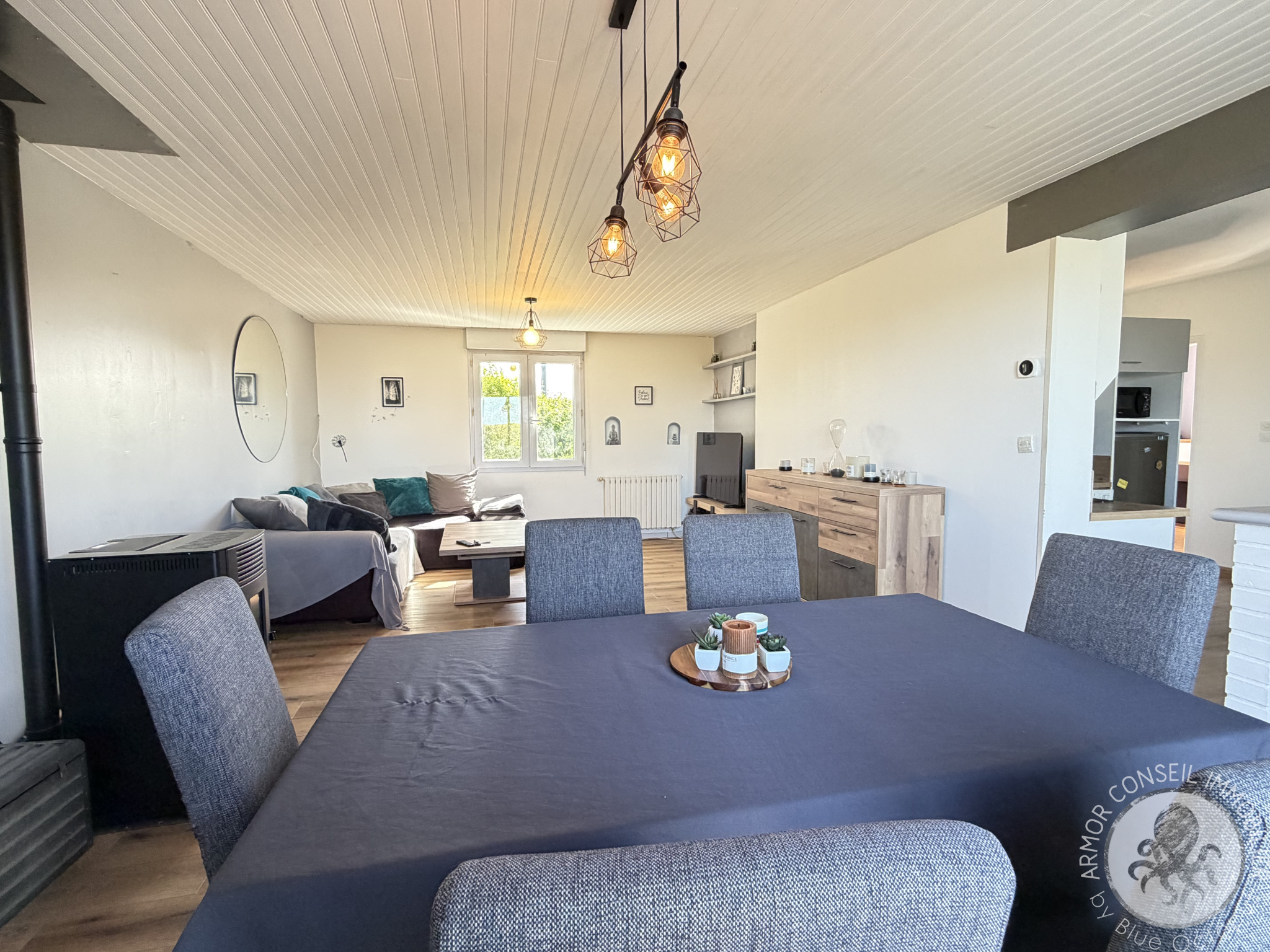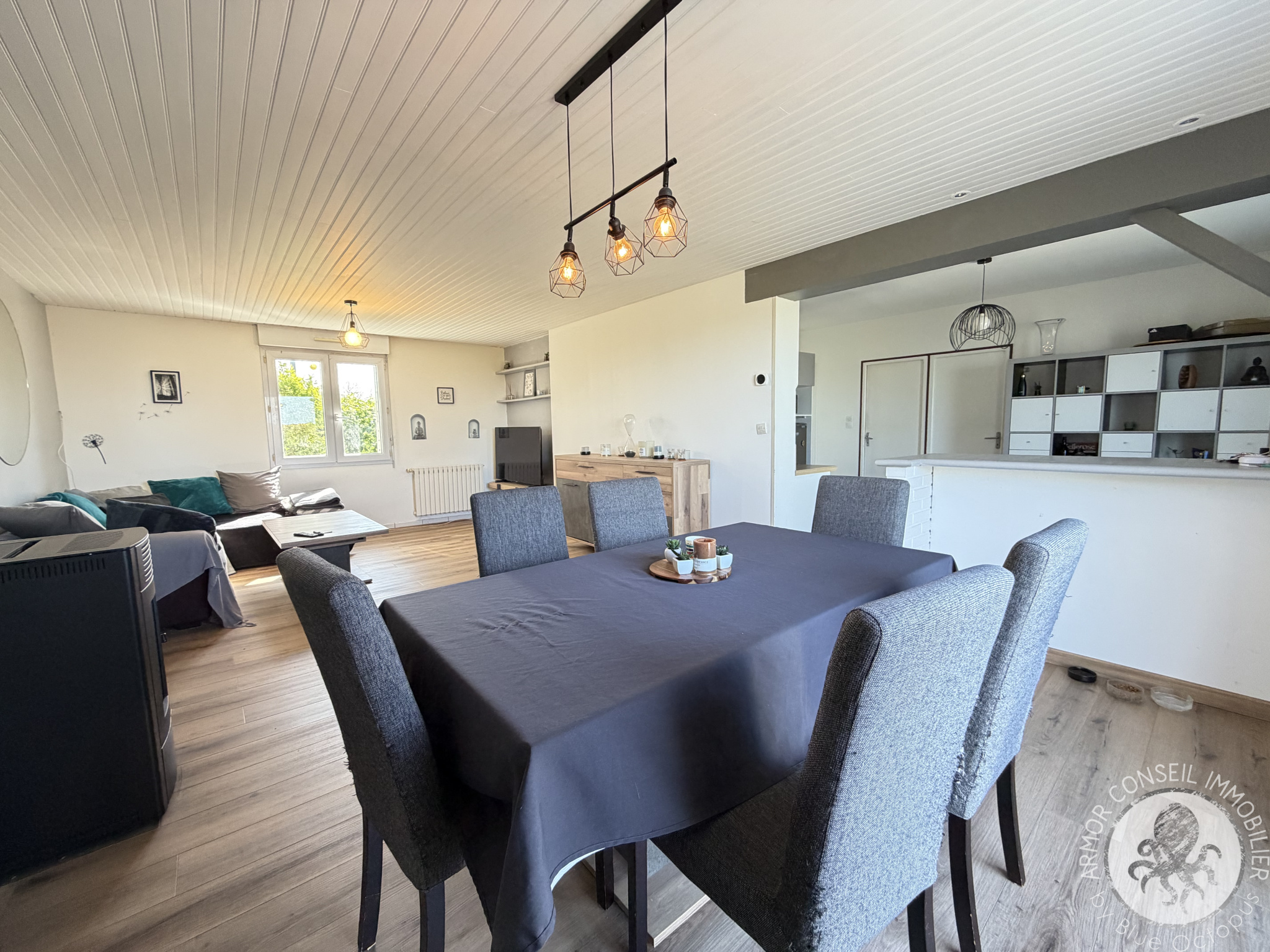 ARMOR CONSEIL IMMOBILIER Exclusivité : Patricia DIBONNET vous propose de venir découvrir cette charmante maison de plain-pied, nichée dans un petit hameau paisible, à seulement 12 minutes des Plages de Saint Cast et Fréhel. D'une surface habitable d'environ 95 m2, cette maison a été rénovée avec goût, en privilégiant des équipements performants, permettant de réduire la consommation d'énergie. Vous serez séduits dès l'entrée par sa jolie pièce de vie lumineuse, chaleureusement agrémentée d'un poêle à granulés, ouverte sur cuisine aménagée et équipée, idéale pour partager des moments conviviaux, trois chambres, agréable mezzanine à l'étage, WC séparés et buanderie. Côté annexes, vous bénéficierez d'une cave de 20 m2, ainsi qu'une remise de jardin offrant des espaces de rangement. Le tout est implanté sur un terrain d'environ 550 m2, facile d'entretien et idéal pour profiter des beaux jours en toute sérénité.