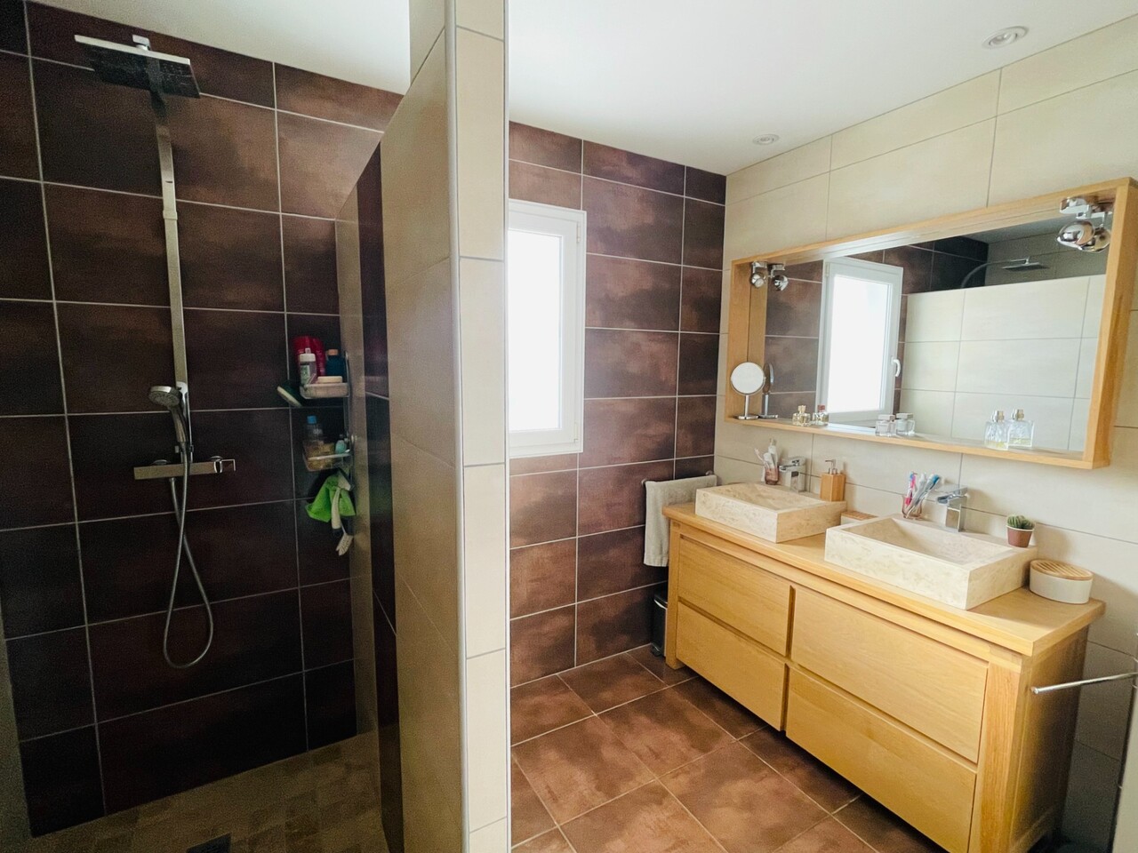 Chauffage par pompe à chaleur au sol. Construction en brique avec vide sanitaire. Finitions soignées et matériaux de qualité.