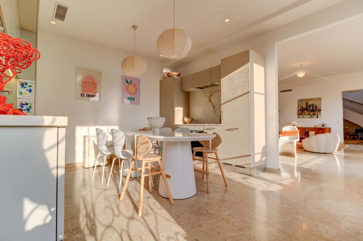 Les extérieurs s'articulent autour de plusieurs espaces : terrasse sur le toit, espace piscine avec cuisine d'été. Vous pourrez profiter de terrasses ou de balcons à tous les niveaux, offrant différentes ambiances au fil de la journée.