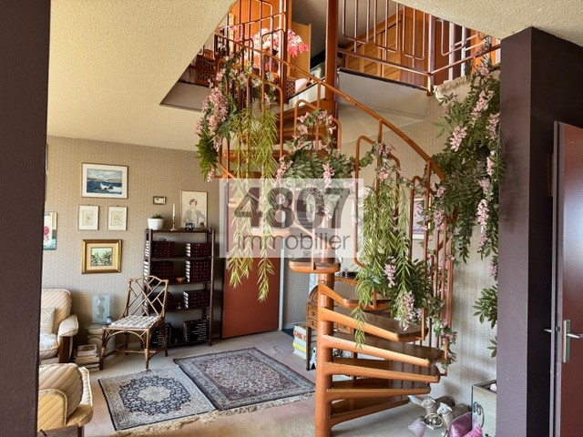 Situé au dernier étage d'un immeuble, ce superbe duplex offre des volumes généreux et une distribution idéale et confortable avec une terrasse panoramique de 113 m2. Il se compose d'un espace cuisine, d'un coin salon de 32 m2, ainsi que d'un espace nuit comprenant 5 chambres, répondant parfaitement aux besoins d'une grande famille. Le bien dispose de deux salles de bains, particulièrement pratiques. La surface habitable s'élève à environ 157m2, offrant des espaces lumineux et bien agencés. L'appartement bénéficie également cave, ainsi que de deux garages. Ce bien rare combine espace, confort et fonctionnalité.
