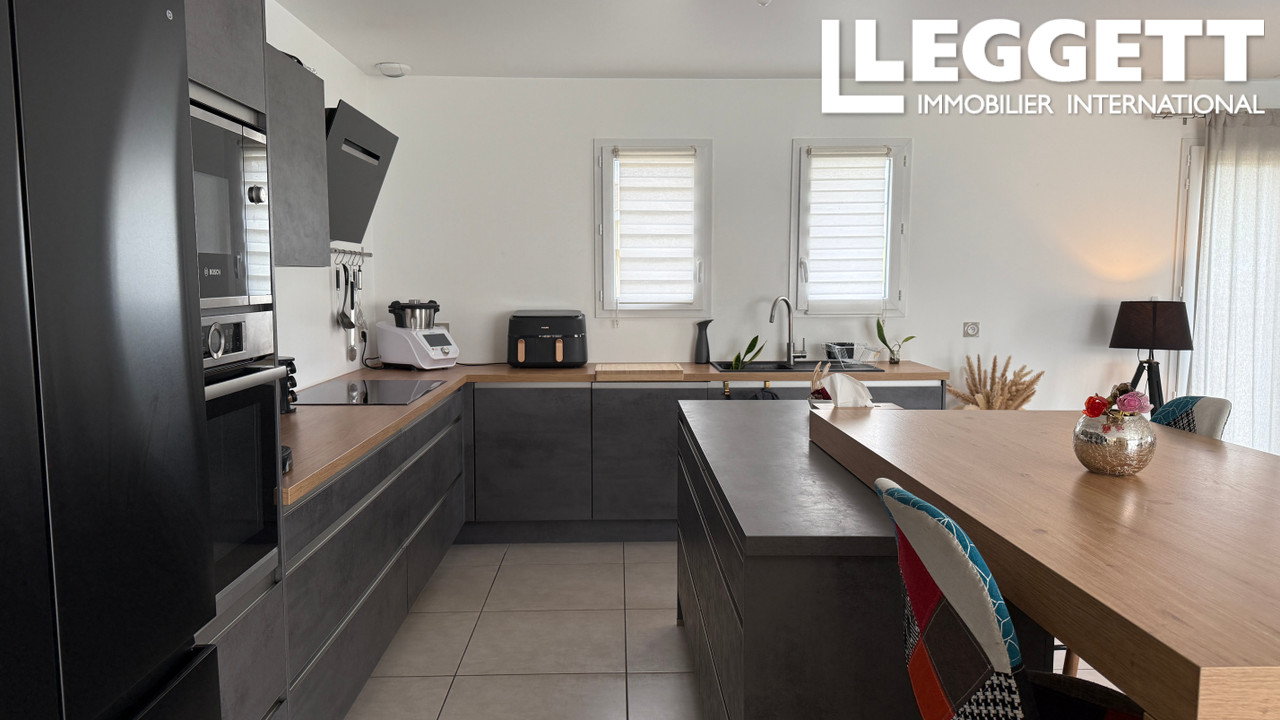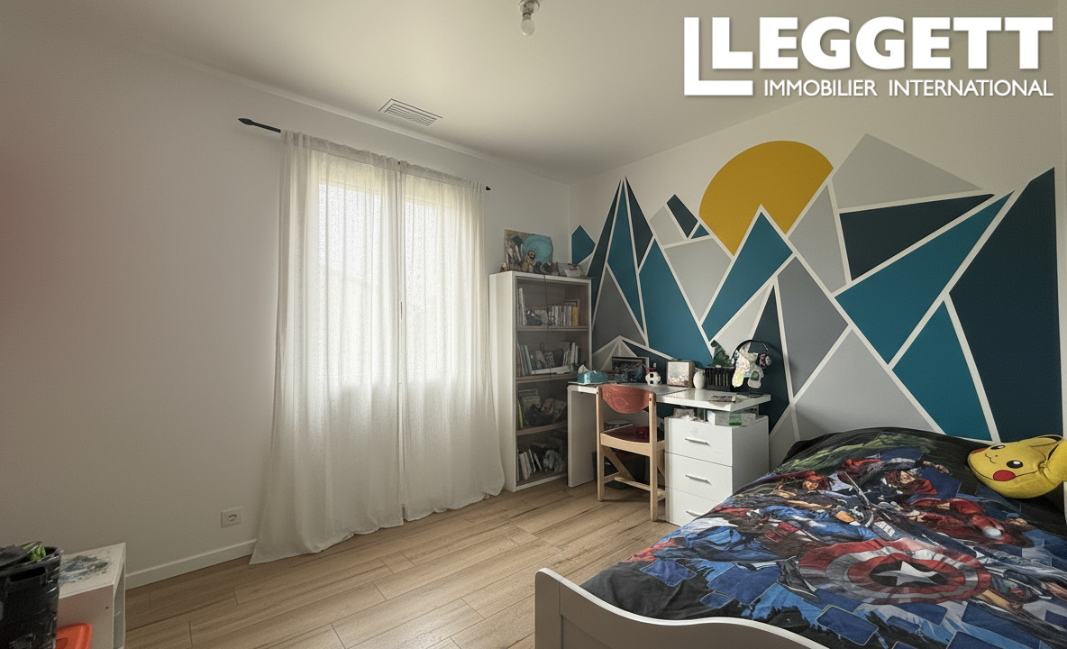 A43996GUH33 - Maison contemporaine située à Pugnac, offrant un cadre de vie agréable proche des commerces et avec un accès rapide à Bordeaux. Elle comprend un espace nuit avec trois chambres (dont une suite avec salle d'eau), un bureau pouvant servir de quatrième chambre, ainsi qu'une seconde salle d'eau. La pièce de vie lumineuse de plus de 48 m² intègre une cuisine moderne équipée avec cellier. Le bien dispose également d'un garage, d'une terrasse et d'un terrain clos de 944 m². Une maison familiale fonctionnelle et recherchée.