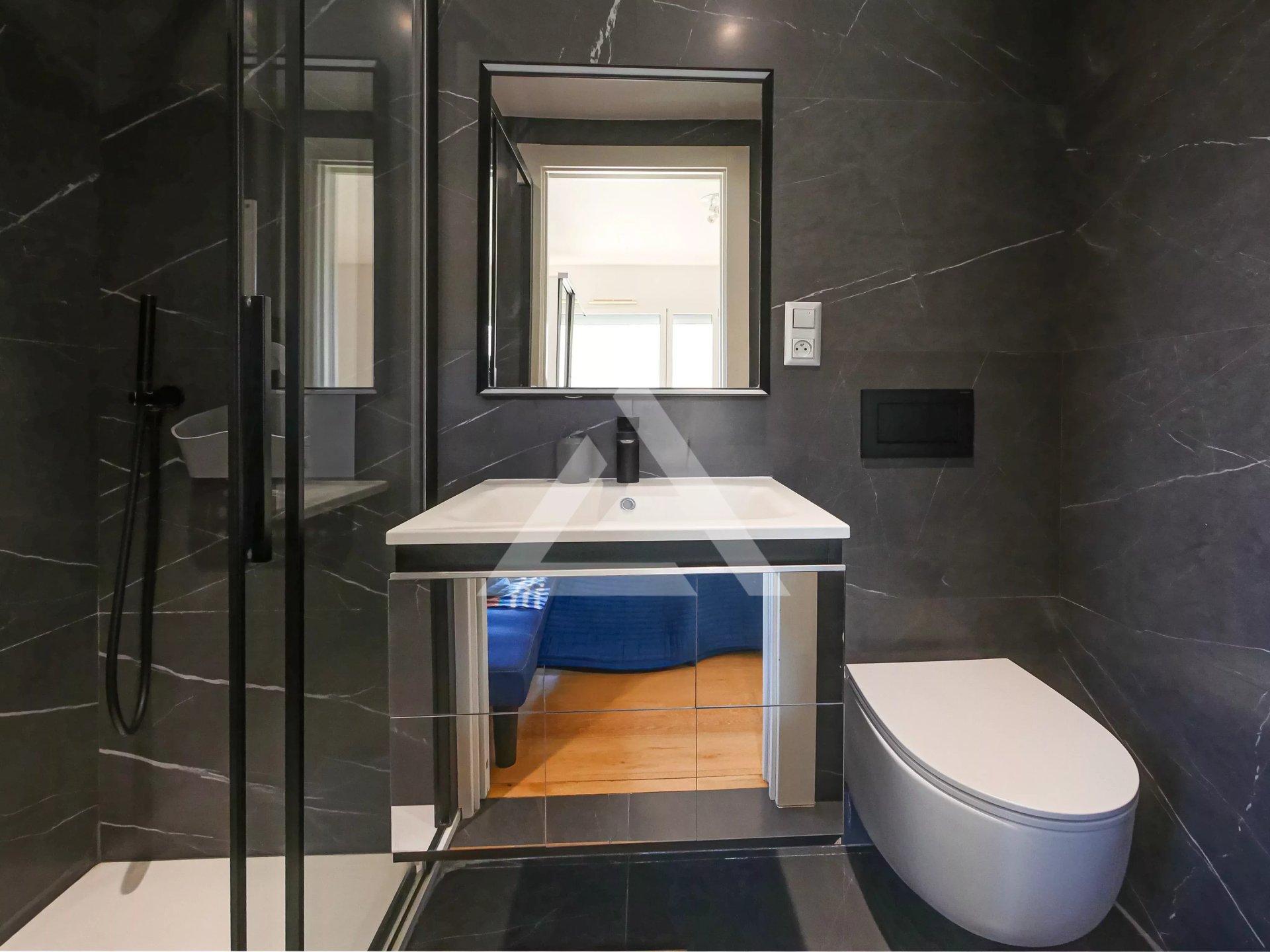 L’appartement se compose d’un séjour lumineux avec cuisine ouverte, donnant accès à une belle terrasse de 8 m², deux chambres dont une avec salle de douche privative, ainsi qu’une salle de bain indépendante.