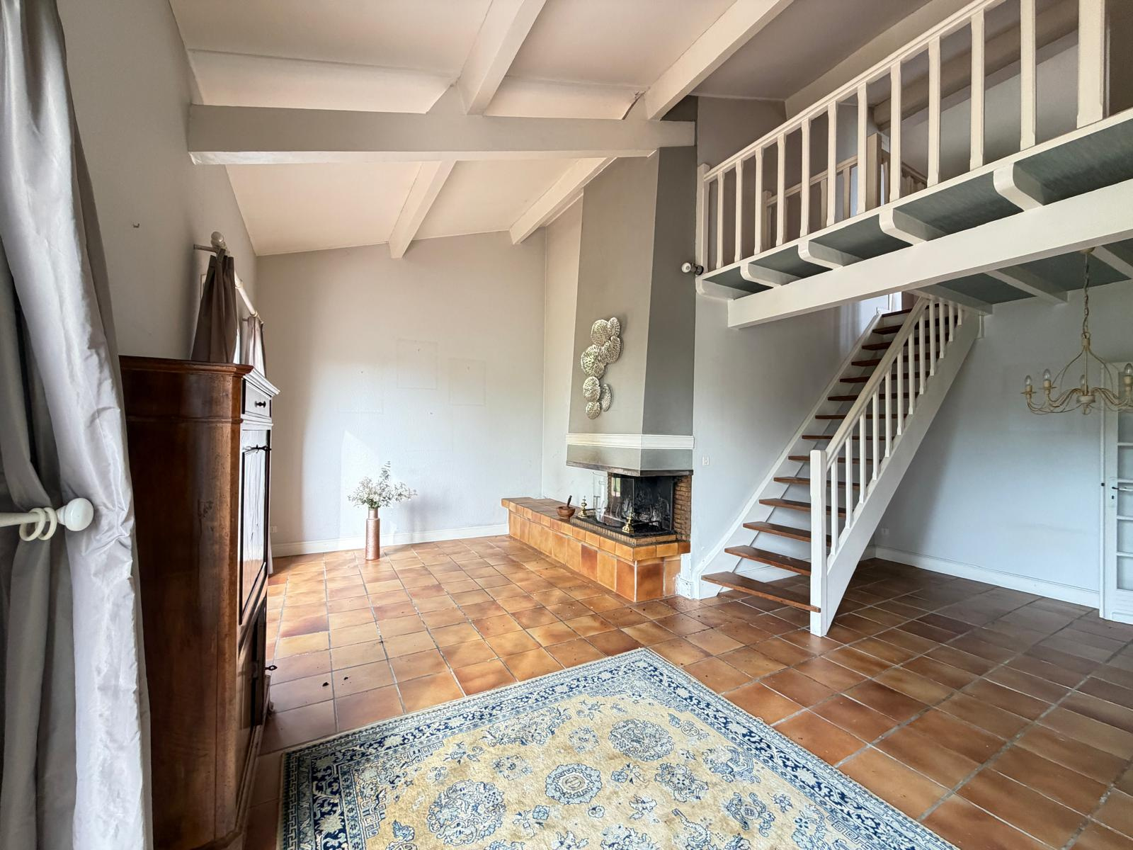 À l'étage, une mezzanine accueille une troisième chambre avec salle d'eau ainsi qu'un espace bureau, parfait pour recevoir ou créer un coin indépendant.