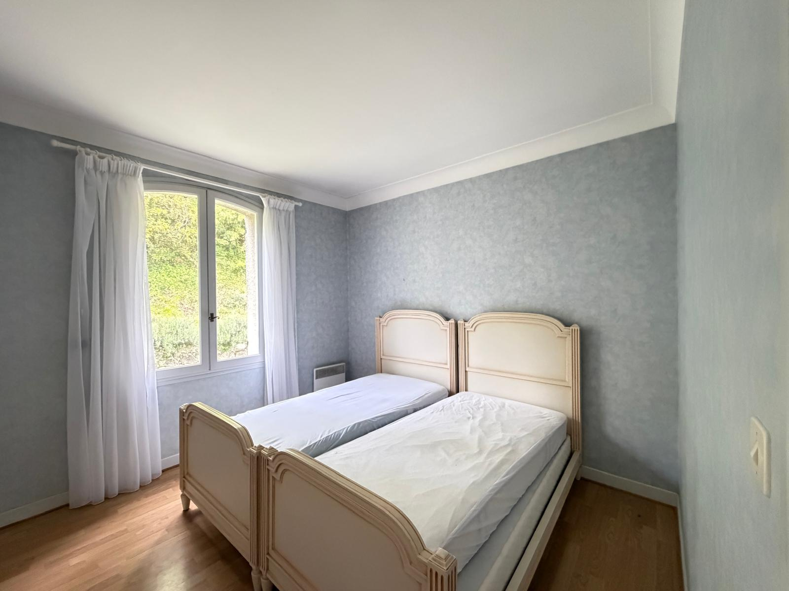 La partie nuit en rez-de-chaussée comprend deux chambres confortables, une salle de bain, un WC indépendant ainsi qu'une buanderie pratique.