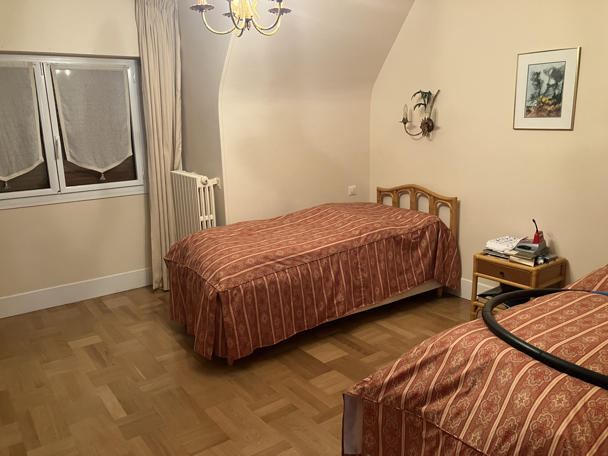 L'habitation, édifiée sur un beau terrain clos et arboré, comprend un sous-sol complet avec garage, chaufferie, salle de billard de 15.42 m2, rangement de 17.02 m2, atelier et cave à vins. Au rez-de-chaussée : entrée de 11.52 m2, salon-salle à manger de 33.05 m2 avec cheminée, cuisine aménagée de 43.98 m2 avec très belle vue sur le jardin, chambre de 10.46 m2, buanderie de 3.72 m2, wc. Au premier étage : palier desservant, trois chambres dont une avec placard et une avec placard et dressing (13.61 m2, 14.68 m2 et 15.88 m2), deux salles de douches (2.48 m2 et 6.09 m2), wc. Au deuxième étage : palier desservant, deux chambres mansardées, petite salle de jeux.