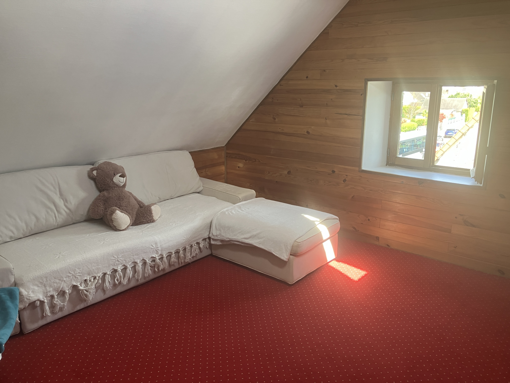 L'habitation, d'une surface habitable de 108 m2 comprend au rez-de-chaussée : entrée de 5.19 m2 avec départ d'escalier, cuisine aménagée de 17.94 m2, salon de 18.26 m2 avec poêle à granulés, wc avec lave-mains. Au premier étage : palier desservant, chambre parquetée de 17.50 m2, chambre ou bureau de 9.28 m2 avec dressing de 3.33 m2, salle de douches/wc de 9.29 m2. Au deuxième étage : palier desservant, deux chambres (14.45 m2 et 13.59 m2).