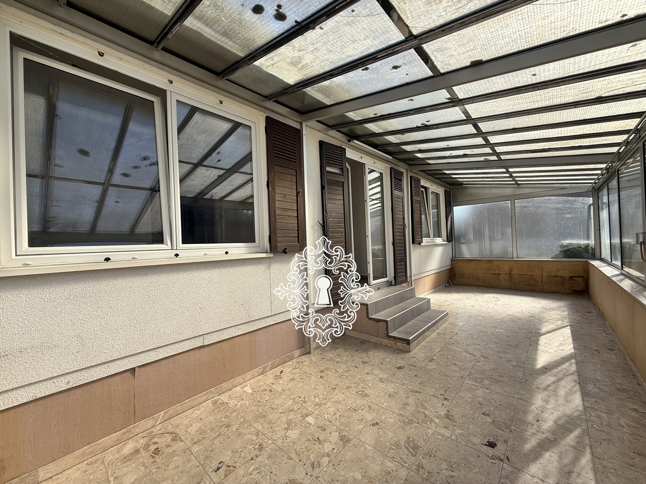 entrée, séjour, cuisine aménagée, couloir, 2 chambres, salle d'eau, wc, véranda,
