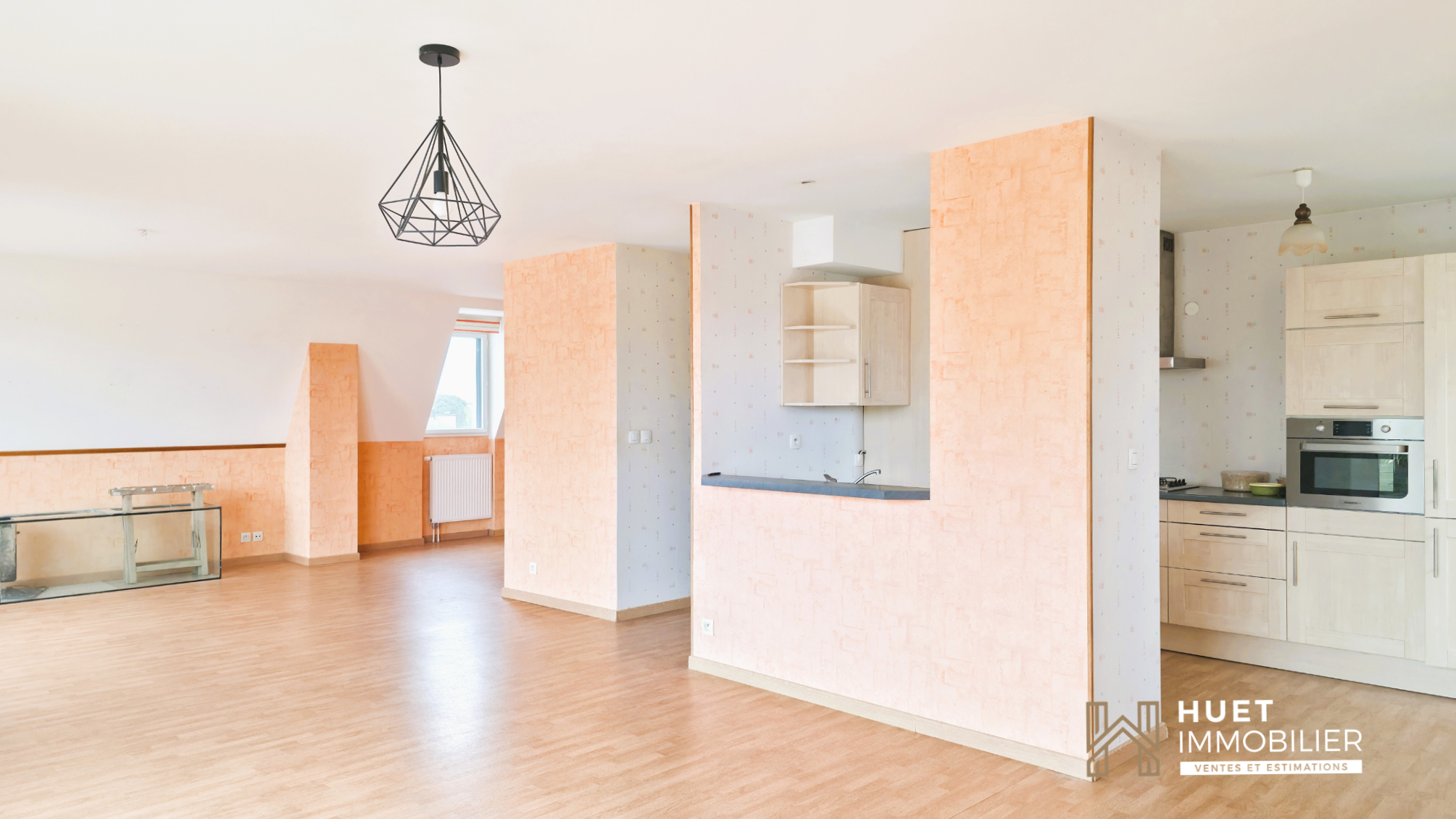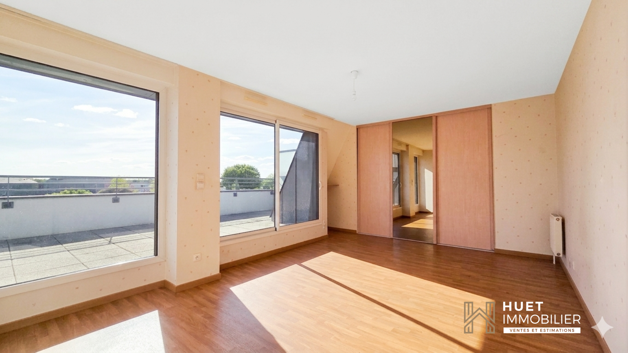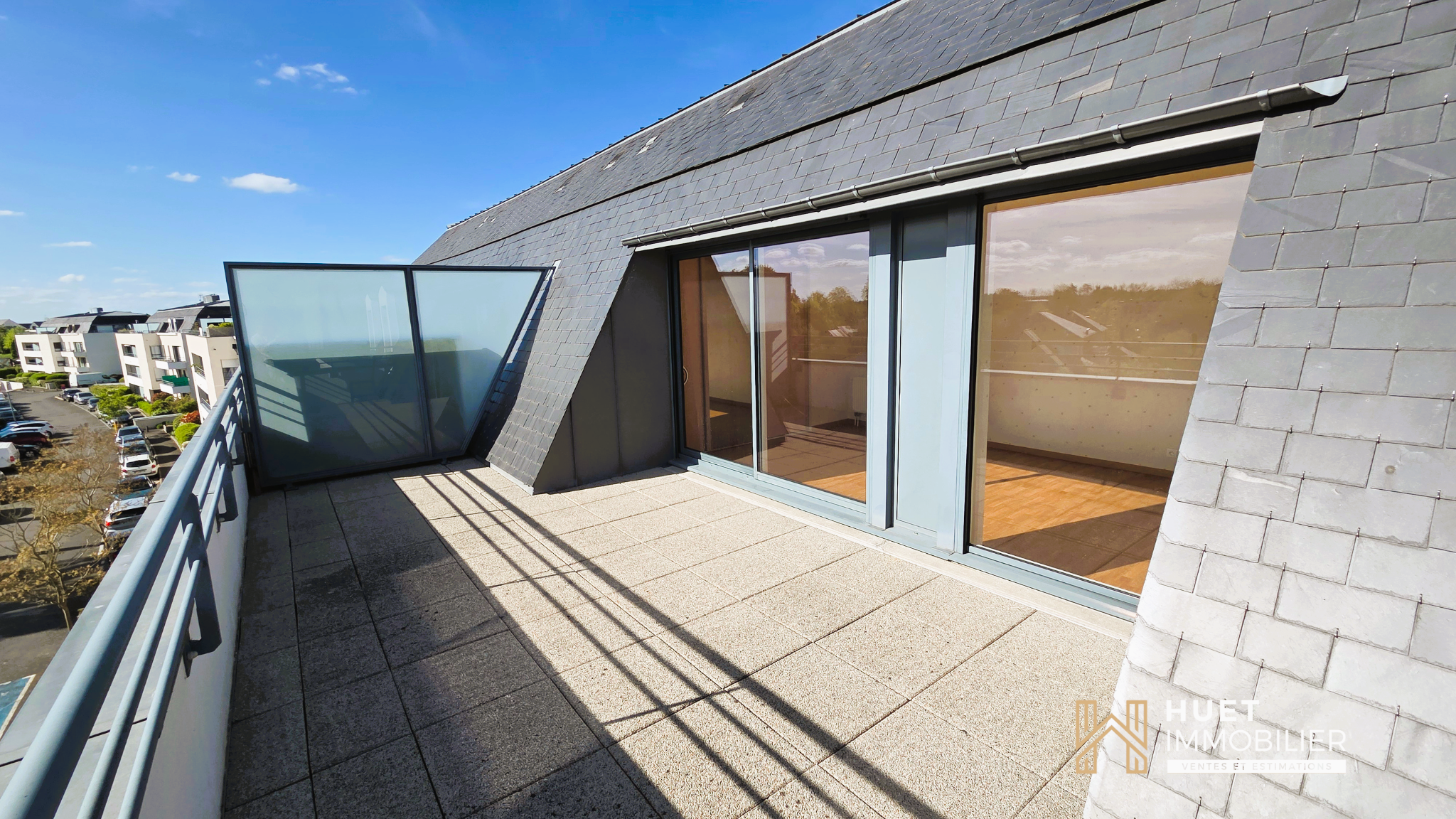 BRUZ - Découvrez ce bien rare aux volumes généreux, situé au 3ème et dernier étage avec ascenseur d'une résidence idéalement située. Véritable 'maison sur le toit', ce bien offre de beaux volumes avec un bel ensoleillement Est/Sud/Ouest.