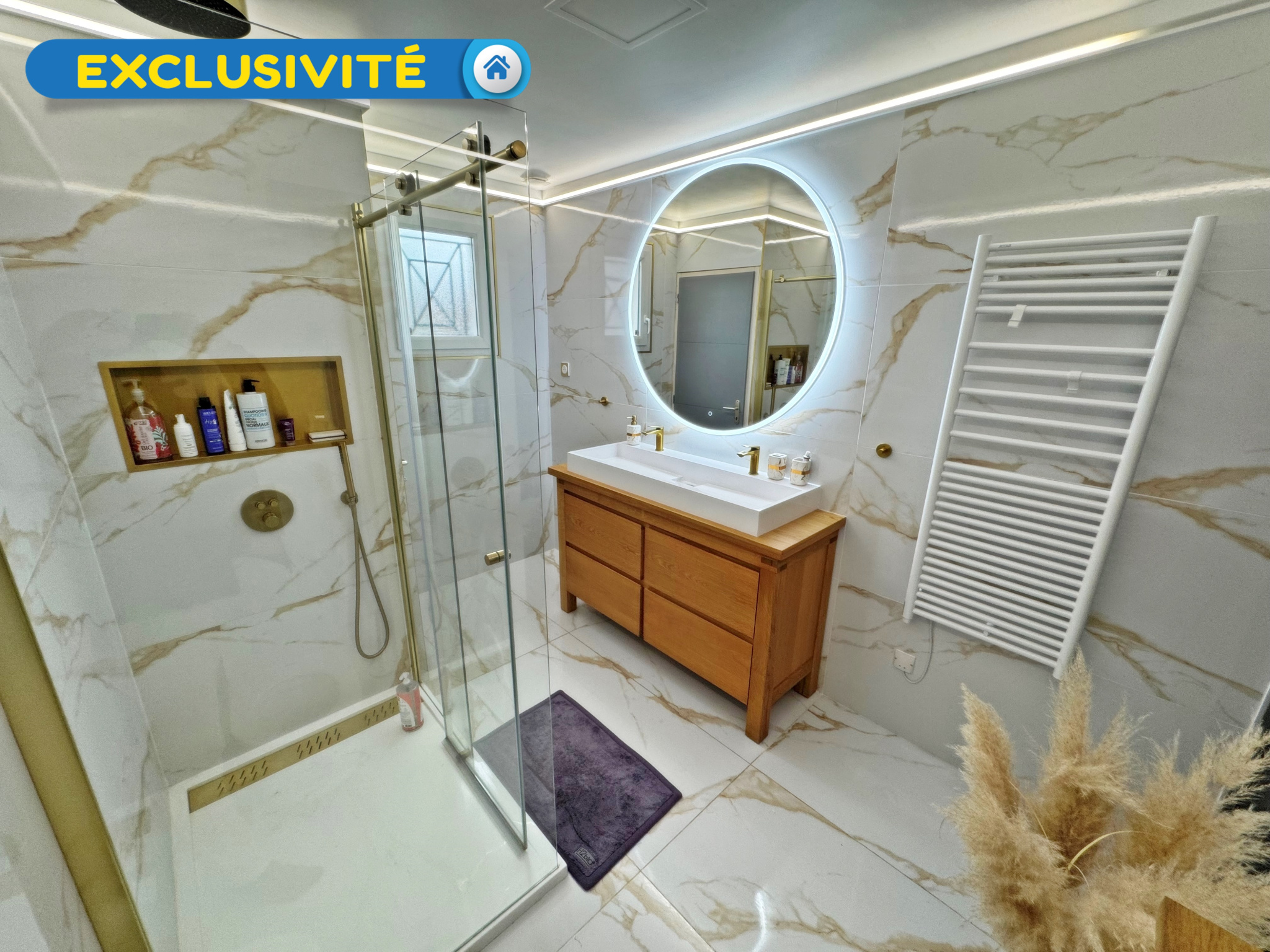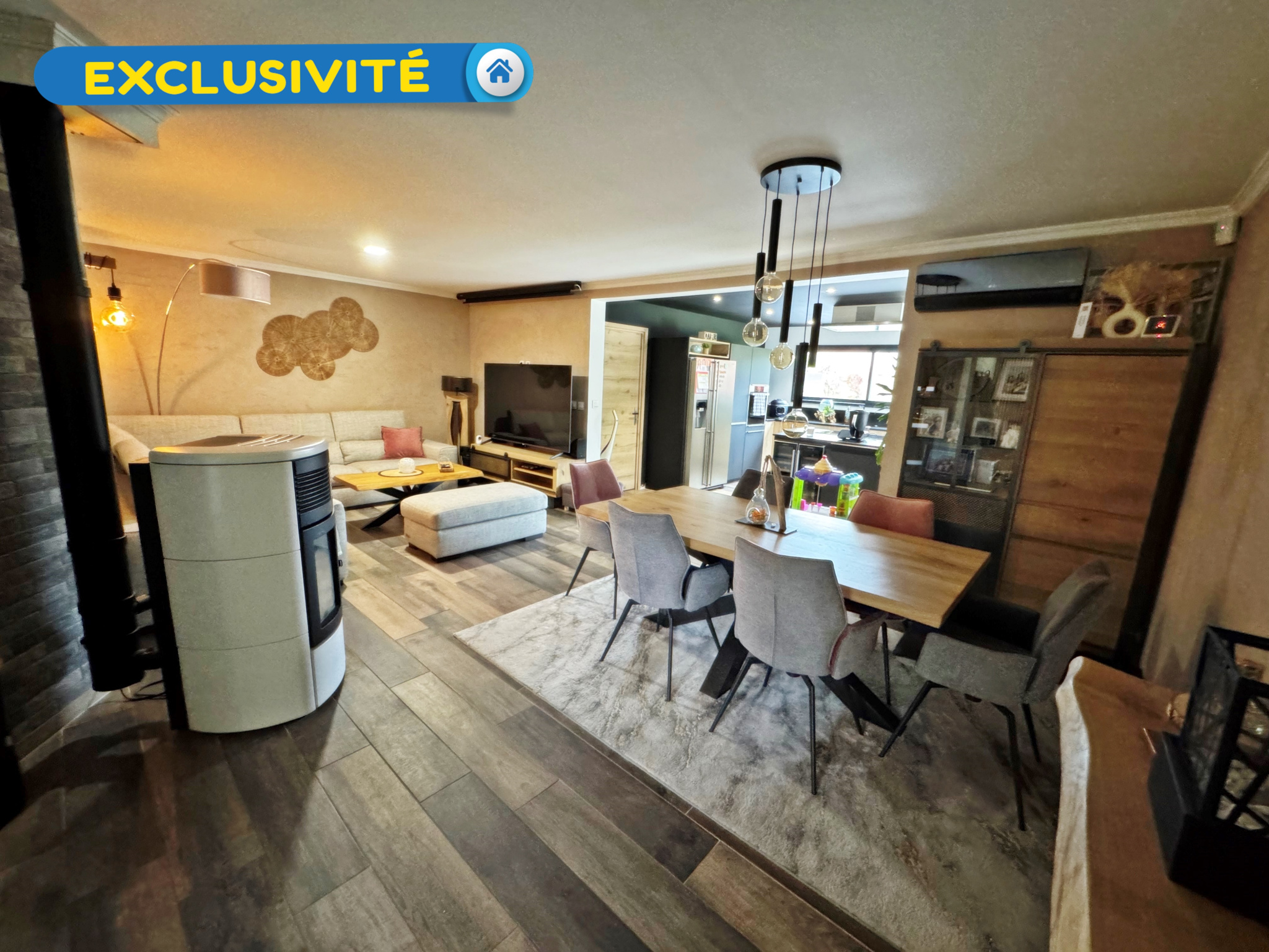 Exclusivité ! Maison de plain-pied avec de très belles prestations d'environ 135 m2 à Vitry-aux-Loges comprenant une entrée avec placards, un spacieux séjour salon d'environ 54 m2 avec une cuisine faite sur mesure avec un plan de travail en granit aménagée et équipée récente et un poêle à granulés, un cellier avec une cuisine d'été, un couloir qui dessert une salle d'eau avec une douche à l'italienne et un WC suspendu, WC séparés avec lave-mains et quatre chambres avec placards dont une avec dressing et salle de bains privative.