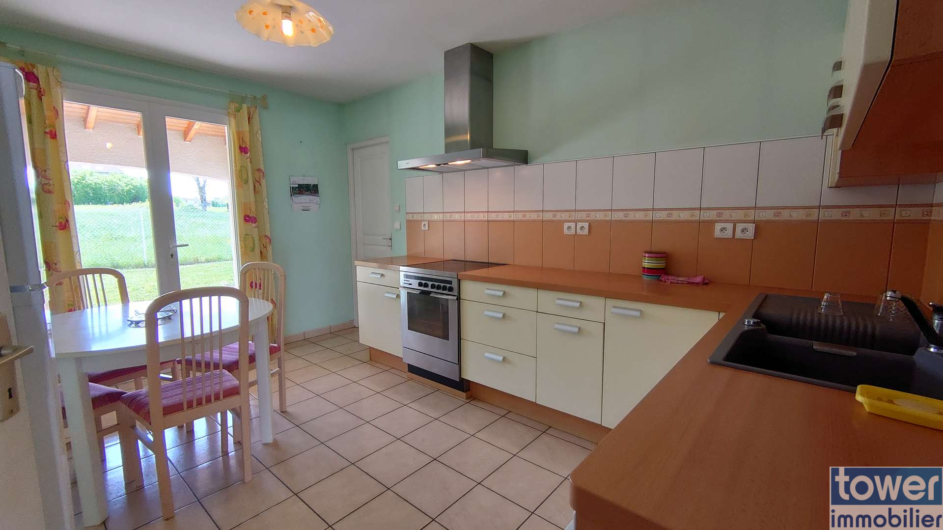 Pascal vous propose (07 88 69 00 07): Belle contemporaine de plain pied proposant 6 pièces à 600 m du centre village. Cette maison construite par un maitre artisan de la région satisfera toute une famille ! Belle entrée-dégagement donnant sur un séjour double exposition avec cheminée. 3 chambres toutes avec penderie. Un bureau. En otant une cloison simple, la cuisine équipée de 15 m2 pourra se convertir en une grande pièce à vivre de plus de 50 m2! Le cellier et le garage complètent l'offre. Vaste terrasse couverte et carrelé . Le jardin clos, est richement planté de fruitiers (pommiers, abricotier, pêcher)