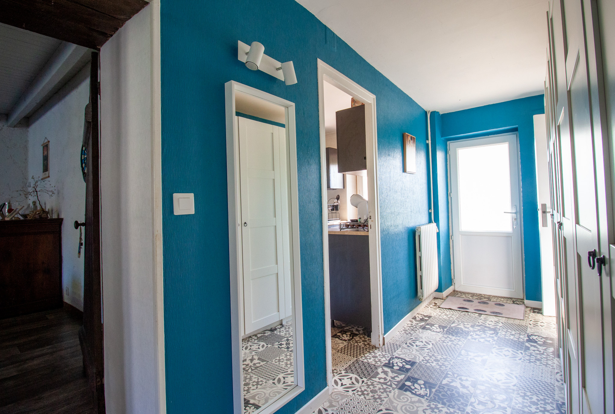 Dès l'entrée, vous découvrirez un espace fonctionnel avec placards intégrés, permettant un rangement pratique au quotidien. Le rez-de-chaussée se compose ensuite d'une cuisine aménagée, offrant un espace convivial pour les repas, d'un salon chaleureux agrémenté d'une cheminée, idéal pour les soirées d'hiver, ainsi que d'une salle à manger , propice aux moments en famille ou entre amis.