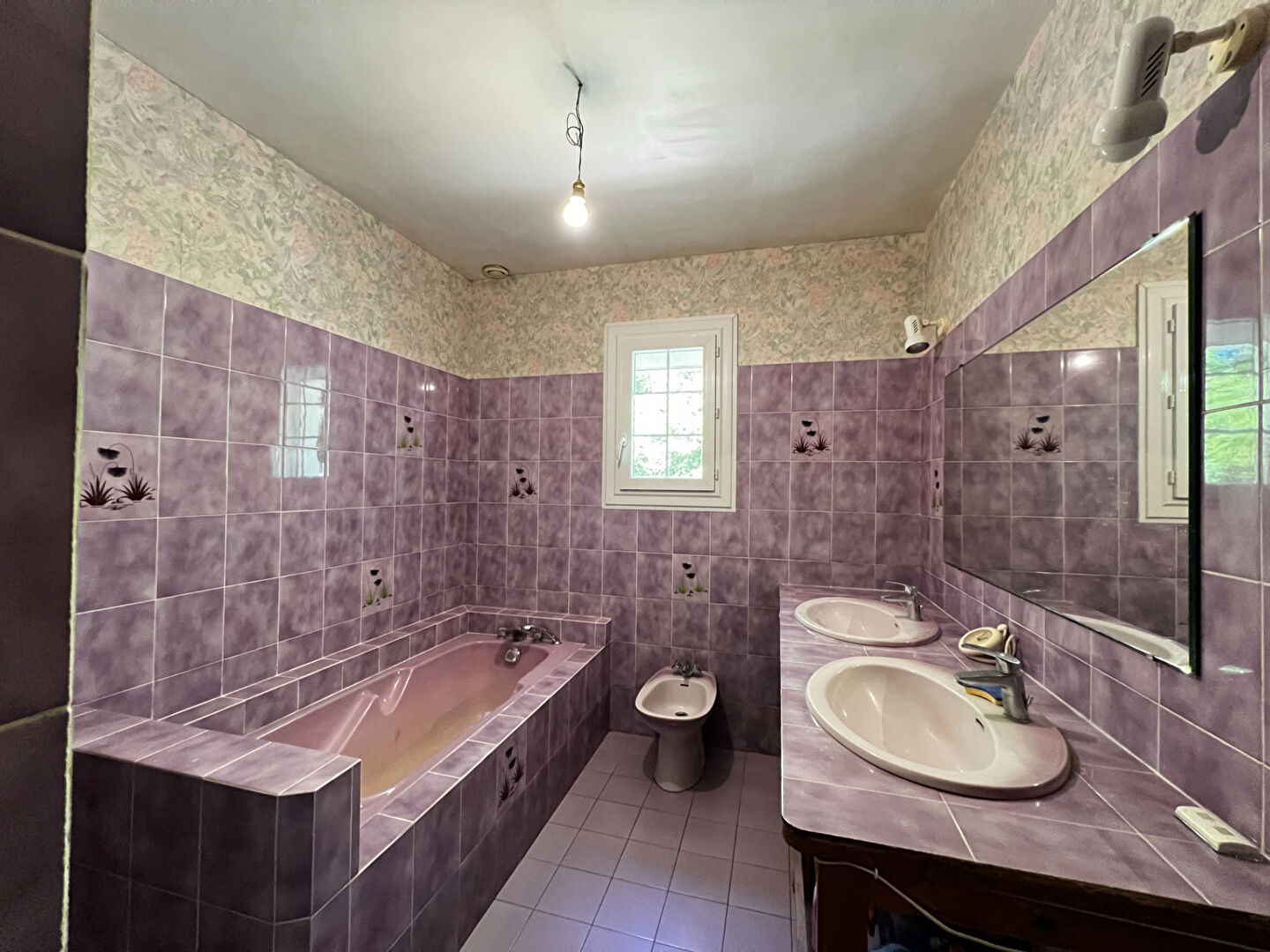 À l'extérieur, une agréable terrasse s'ouvre sur un magnifique terrain arboré de 1 315 m², véritable havre de paix propice à la détente.
