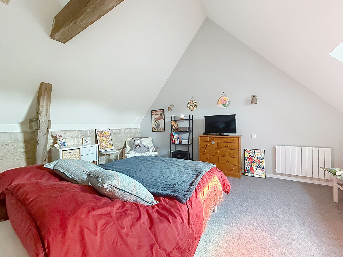 Une atmosphère à la fois rustique, élégante avec ses pierres et poutres apparentes,