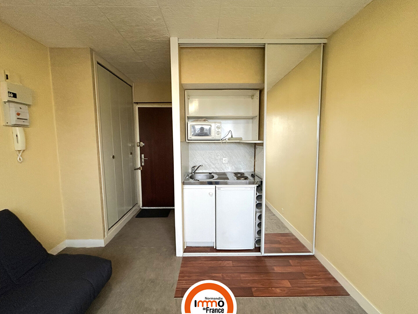 Elle se compose d'une pièce principale lumineuse avec une kitchenette et une pièce d'eau avec W.C. offrant un cadre fonctionnel pour un pied-à-terre ou un investissement locatif. L'ensemble est à rafraîchir, laissant la possibilité de repenser l'aménagement selon vos besoins.