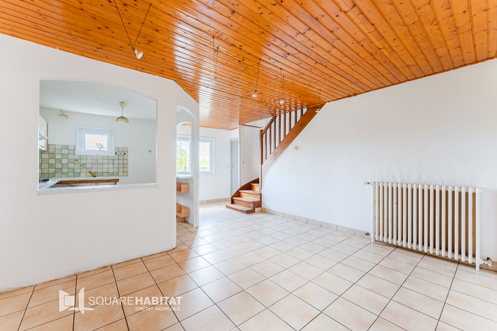 Vous découvrirez ensuite une salle à manger ouverte sur une cuisine aménagée, ainsi qu'un grand salon.