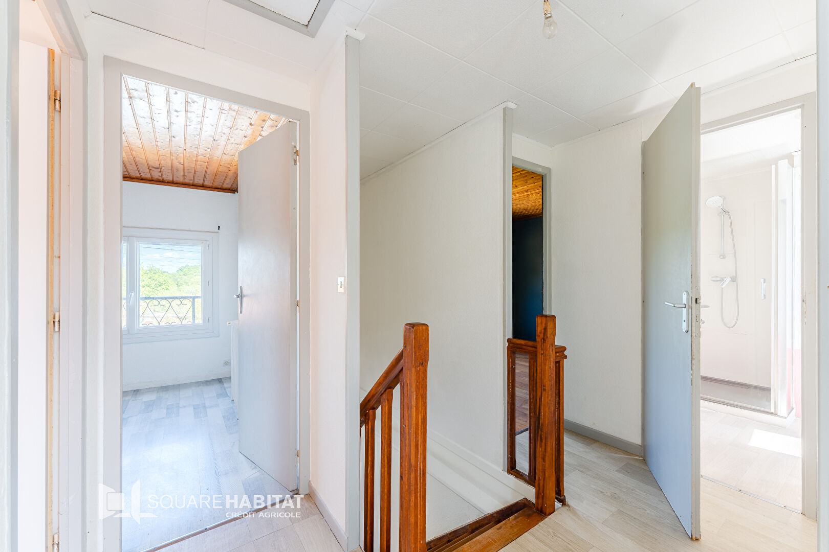 À l'étage, un palier dessert trois chambres, un WC indépendant et une salle d'eau. Un accès à des combles aménageables 35m² complète cet espace.