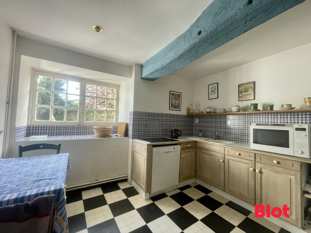 Dès l'entrée, le ton est donné : les pièces de vie offrent des surfaces généreuses et une atmosphère chaleureuse. Le séjour de 48 m² et le salon de 35 m² invitent à recevoir en toute convivialité, dans un cadre où le cachet de la pierre s'exprime pleinement. La cuisine aménagée et équipée complète cet espace de vie fonctionnel et agréable au quotidien.
