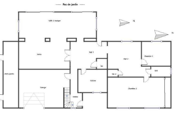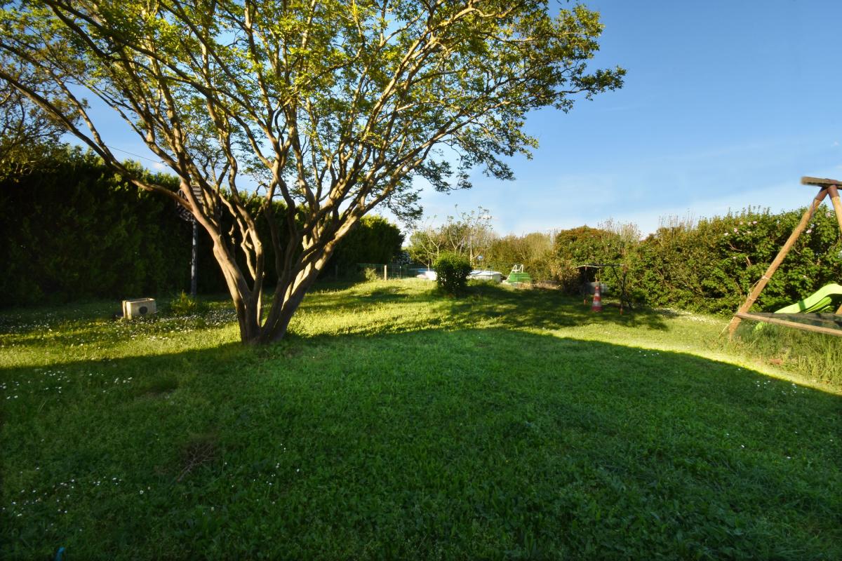 La maison d'environ 200 m² sur 2 niveaux comporte 2 chambres au rez-de-chaussée dont une chambre parentale avec un grand placard, une salle d'eau et une salle de jeu/bibliothèque de près de 15 m², un double séjour d'environ 50 m², une cuisine spacieuse et 2 WC. Le séjour donne sur une terrasse et un jardin arboré.