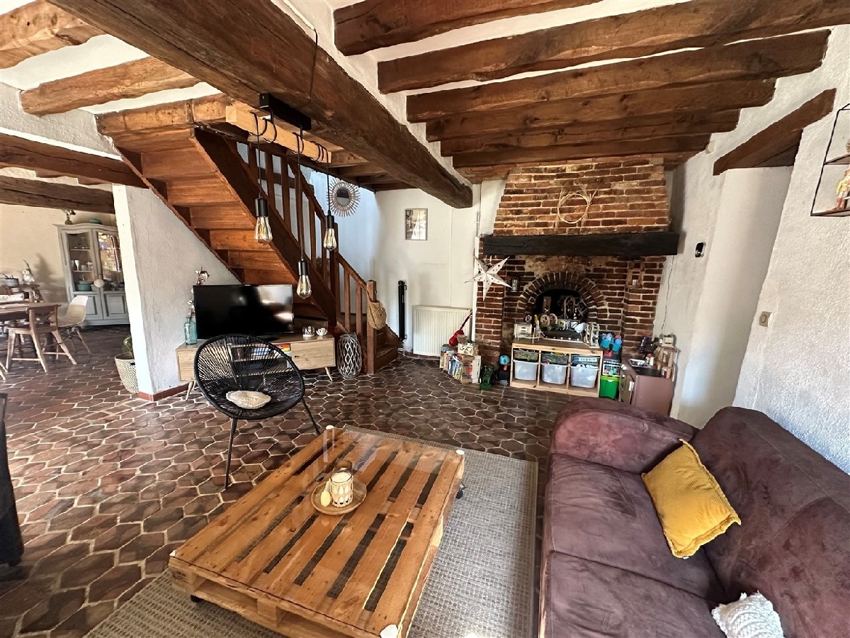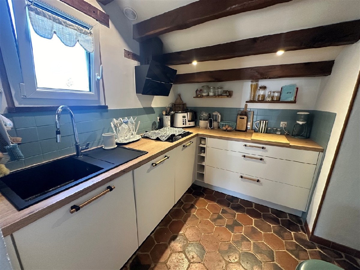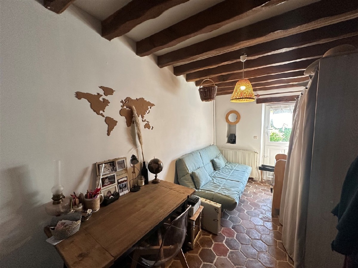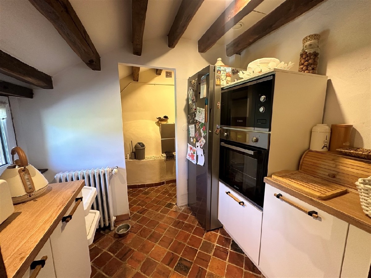 Une maison à usage d'habitation comprenant au Rez-de-Chaussée : séjour avec poêle à bois, coin cuisine aménagée et équipée (neuve) avec arrière cuisine, salon avec four à pain, WC, chaufferie (chaudière fioul de 2019) chambre. A l'étage : pièce palière, deux chambres, salle de bains, WC. Garage.Terrasse couverte. Le tout sur plus de 450 m² de terrain clos. Assainissement individuel refait en 2011. POUTRES ET TOMETTES, COUP DE COEUR ASSURE !