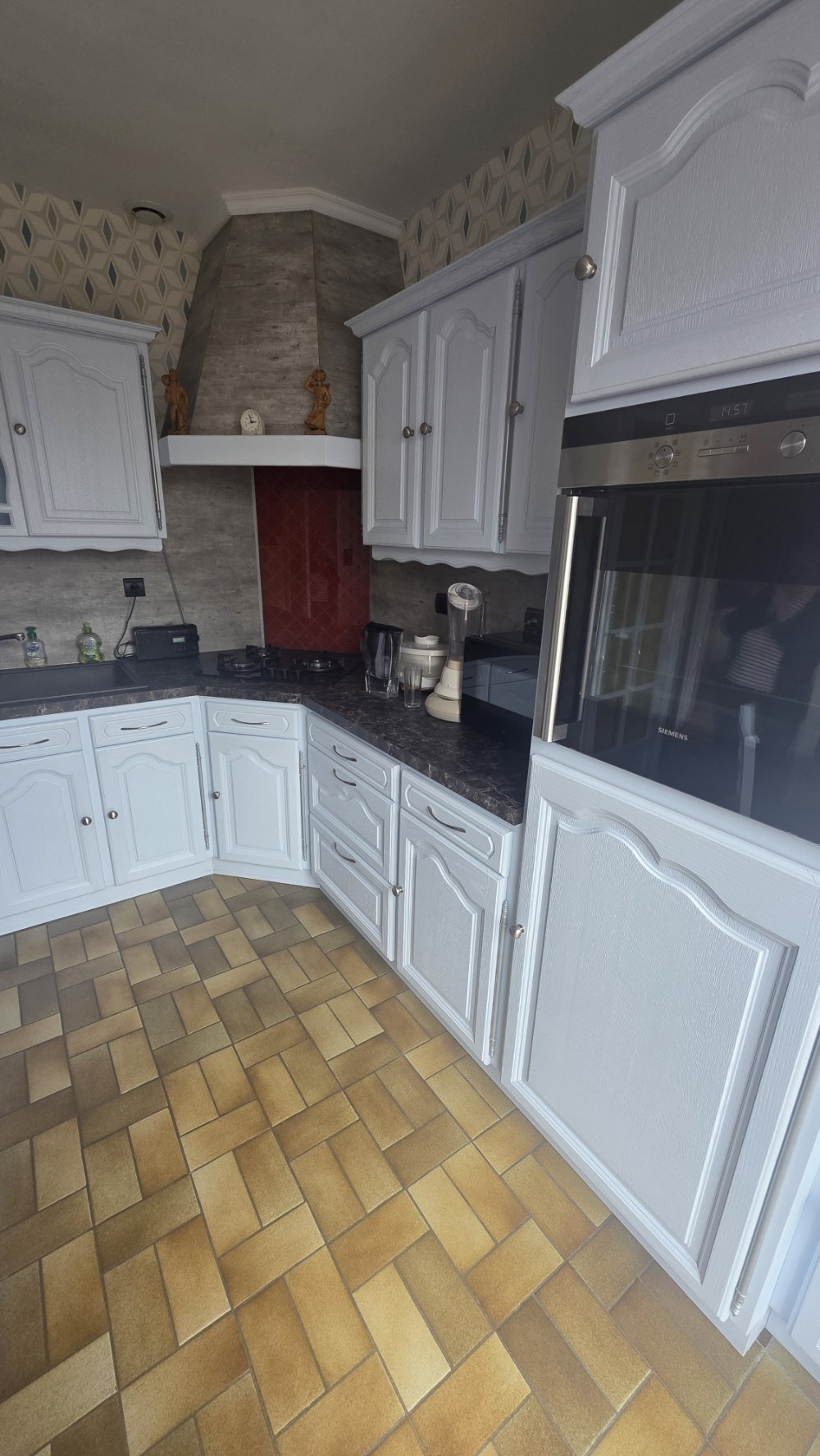 Elle se compose : d'une entrée avec placard, d'une pièce de vie séjour/salon avec parquet, une cuisine indépendante aménagée-équipée, 3 chambres, une salle d'eau, un wc séparé.