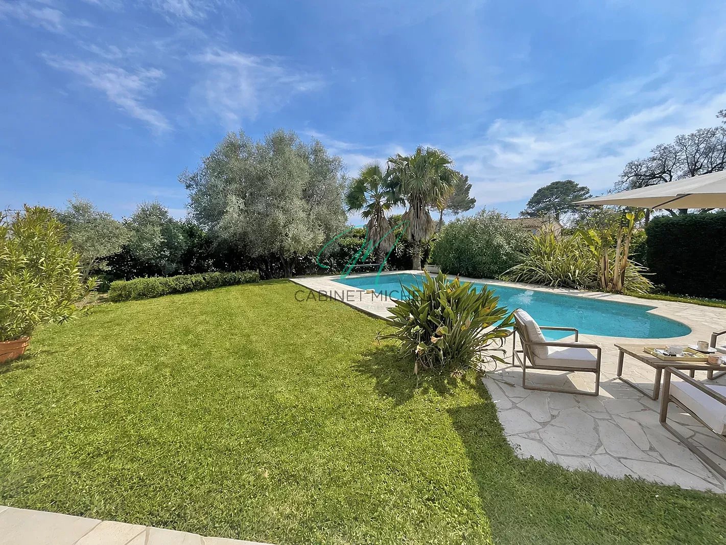 Implantée sur un terrain arboré d’environ 1 488 m², la villa bénéficie d’un magnifique jardin propice à la détente, agrémenté d’une piscine pour profiter pleinement des beaux jours en toute intimité.