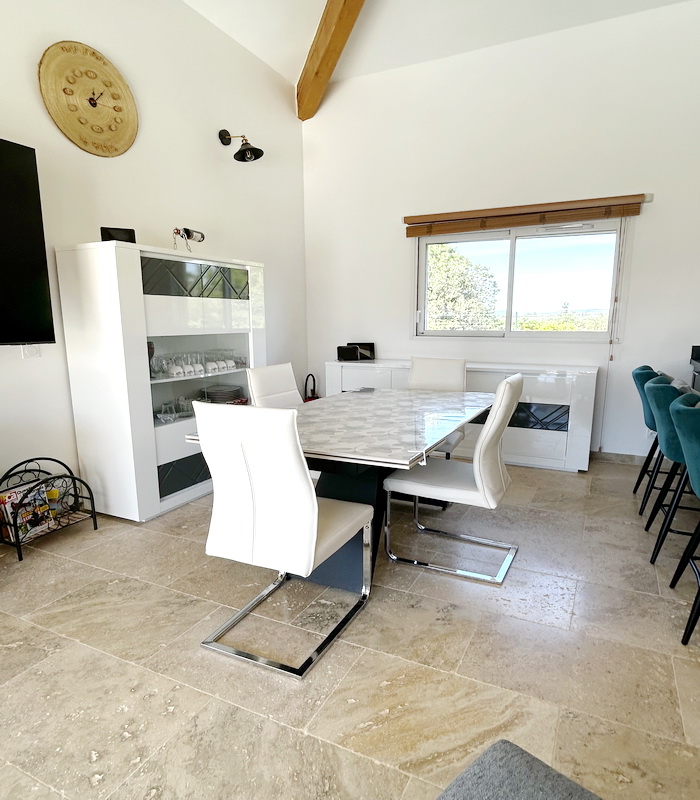 EXCLUSIVITÉ à Crucades, 6 km de Lézignan-Corbières et 18 km de Narbonne, libre sur 4 faces, villa récente T5/6 d'environ 120 m2 de plain-pied avec garage, terrasse pergola et piscine sur une parcelle d'environ 577 m2 cloturée et arborée. Entièrement climatisée, elle offre un grand séjour avec plafond cathédrale et poutres croisées, une cuisine ouverte entièrement équipée, un large dégagement qui pourrait recevoir un bureau, une chambre parentale avec salle d'eau privative et toilettes, 3 chambres supplémentaires, une salle d'eau commune, un toilette séparé, un cellier - bunderie et un garage. Côté extérieur, toutest très bien aménagé avec des plages carrelées autour de la piscine, une terrasse avec pergola et des abords végétalisés.