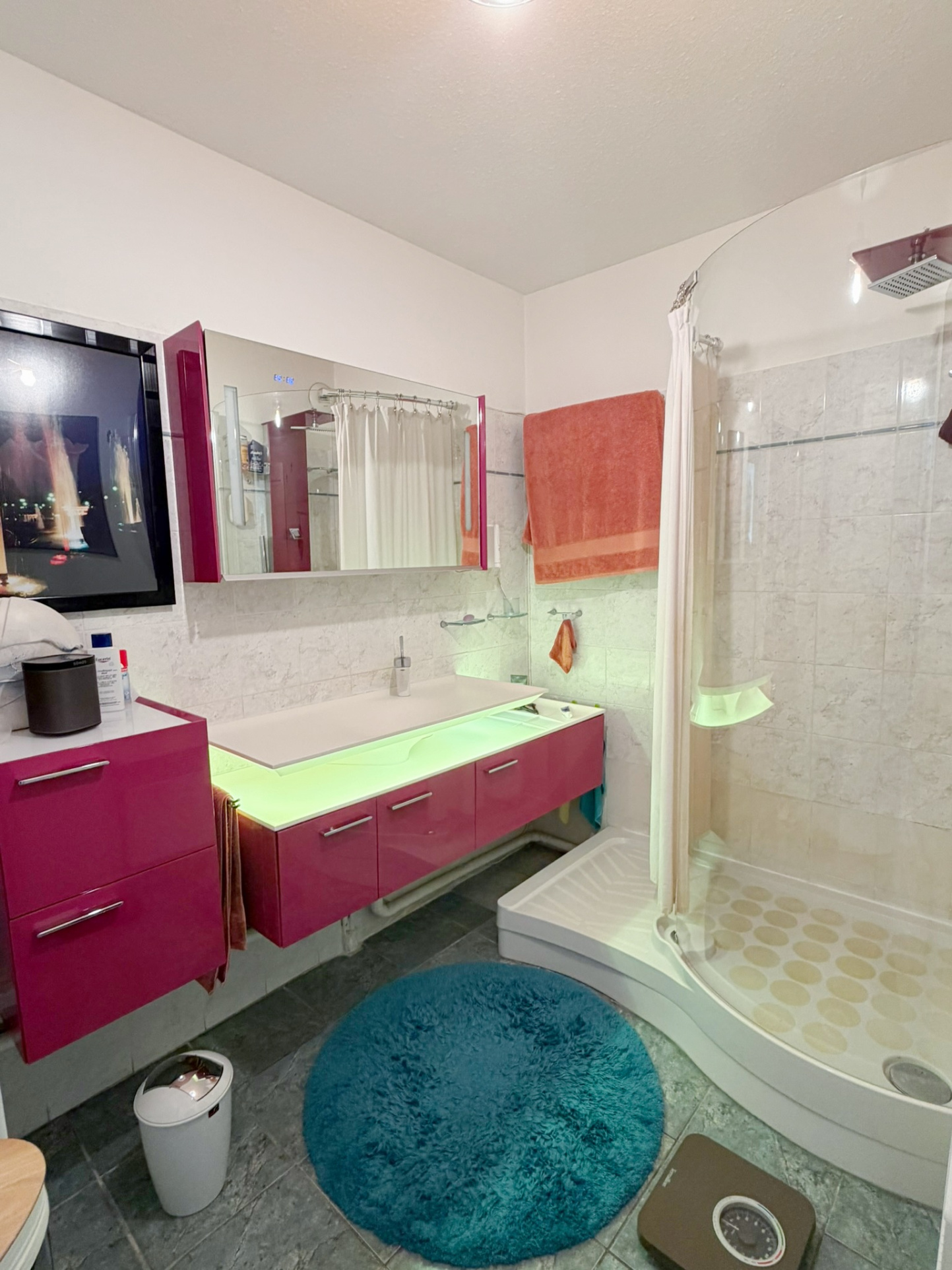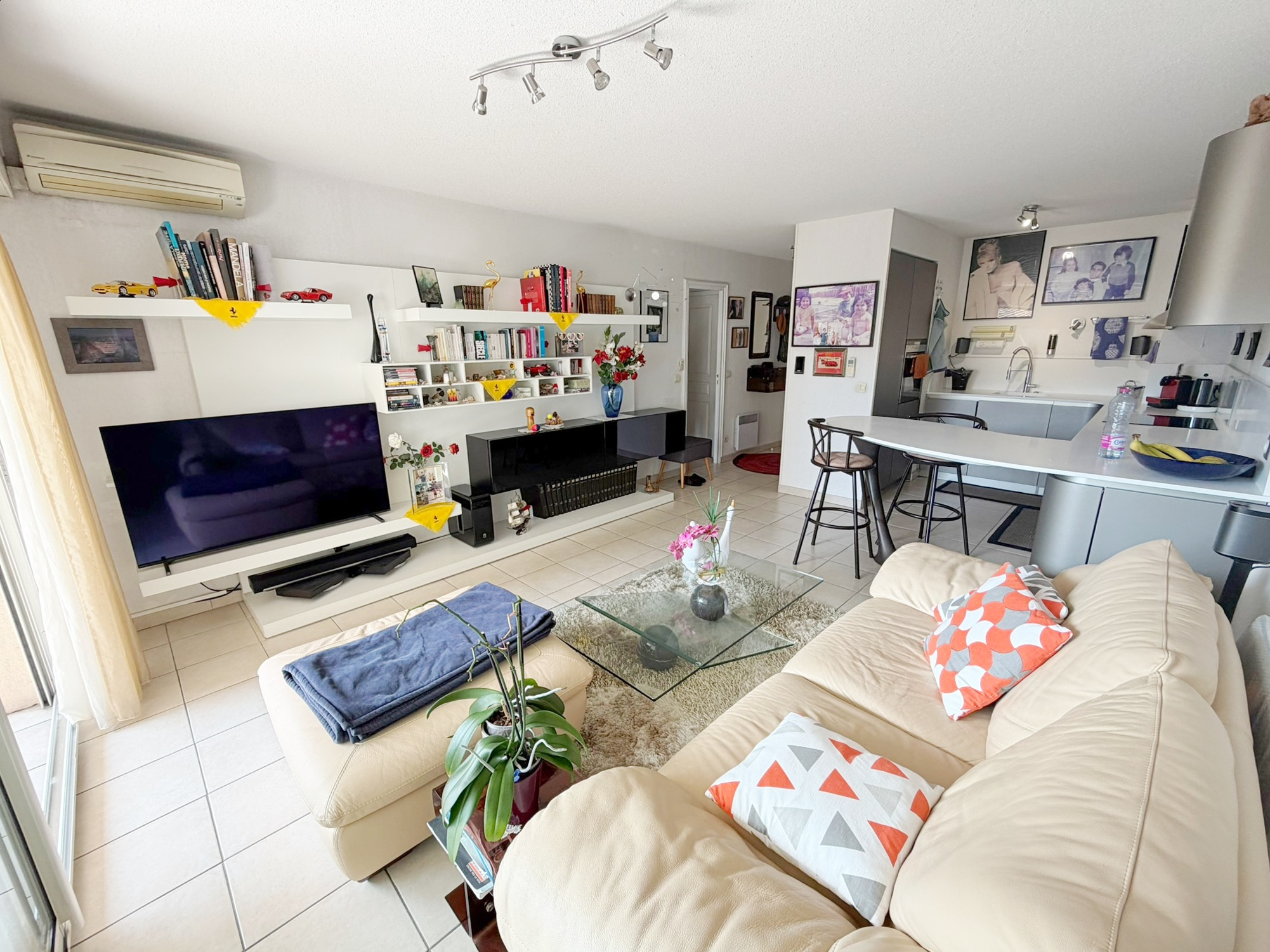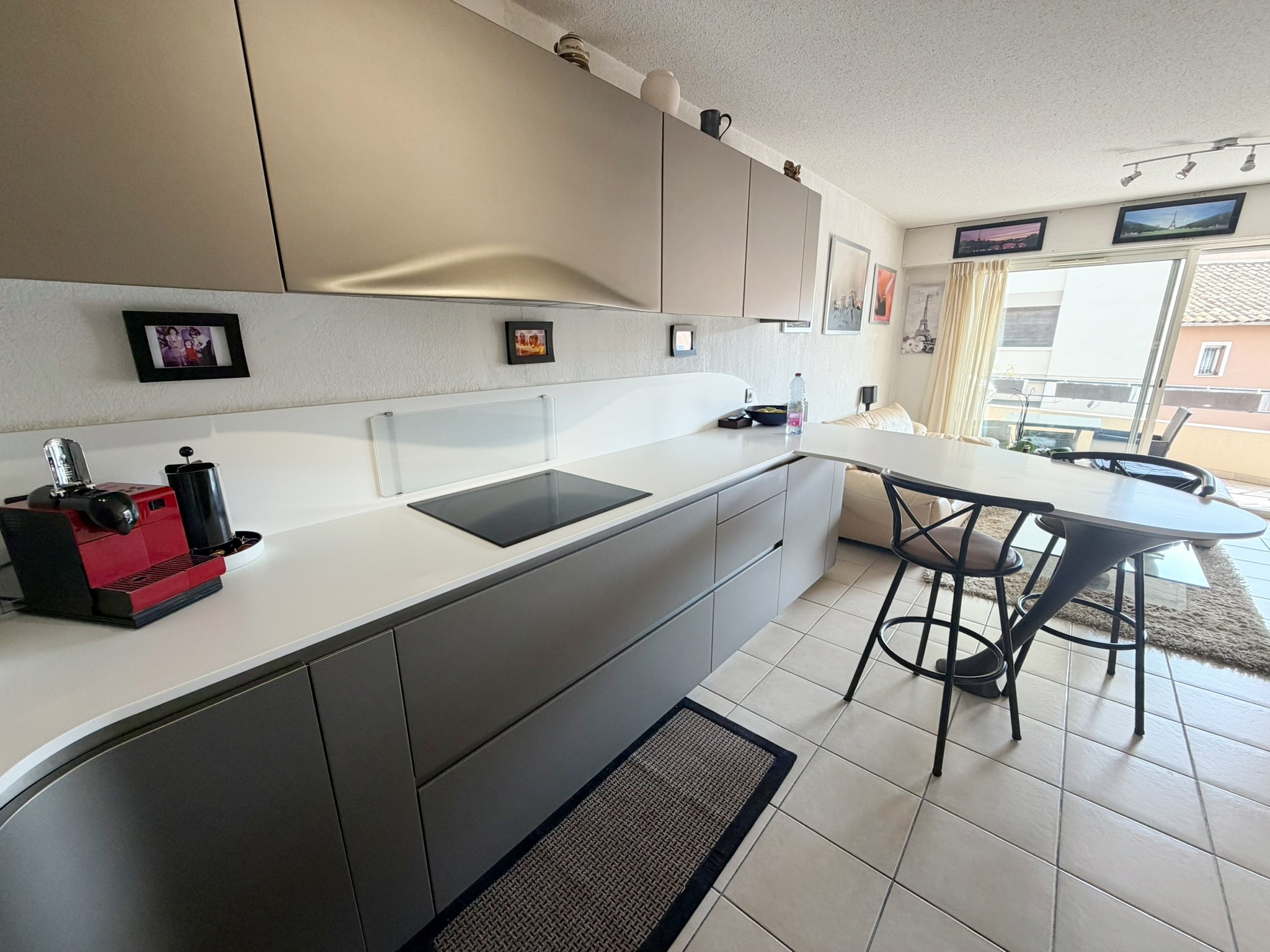 Vous y trouverez une entrée équipée d'un placard, un pièce de vie comprenant une cuisine contemporaine de designer ouverte sur le séjour, offrant un espace lumineux et convivial.
