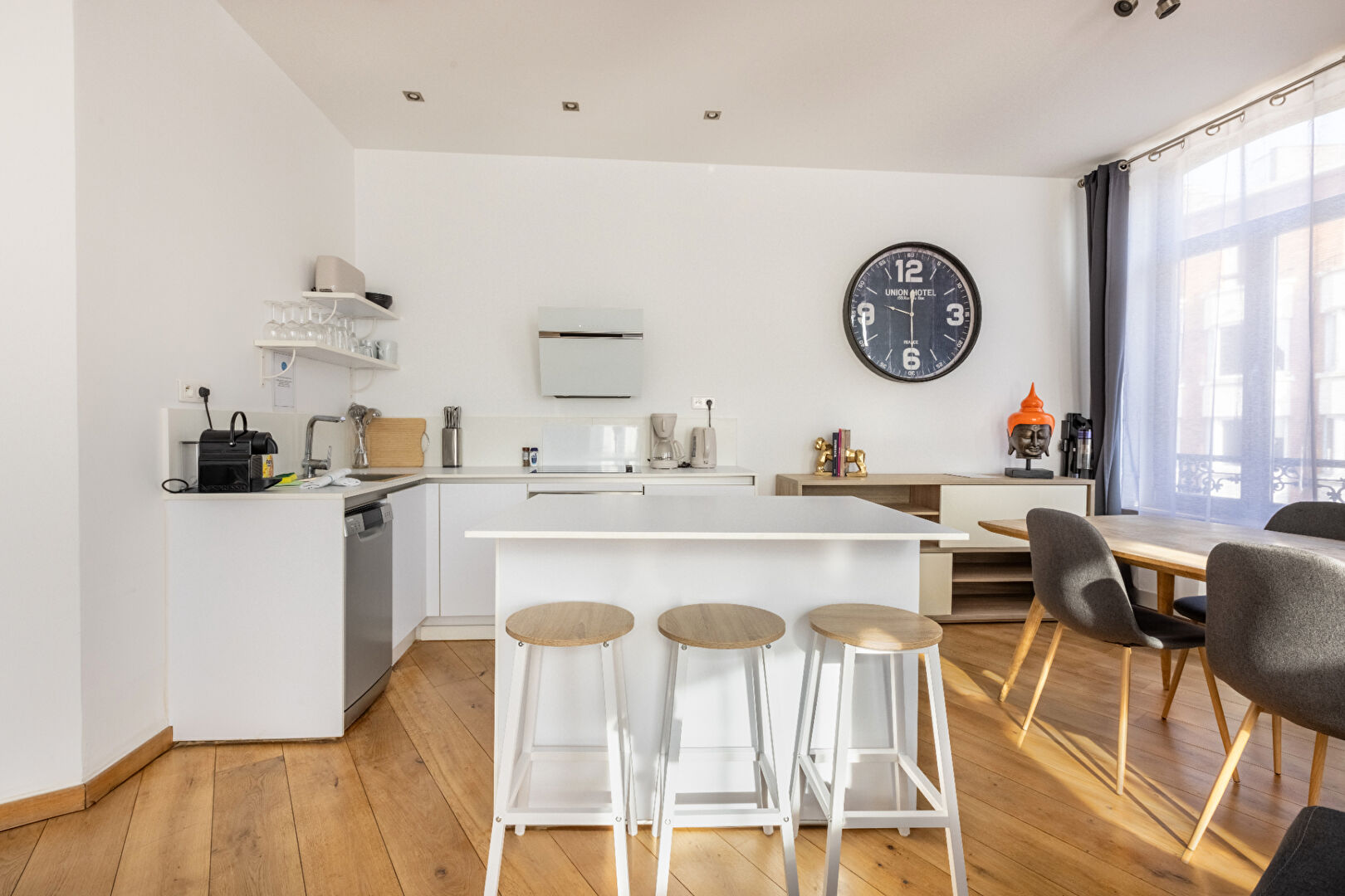 Positionné en angle, l'appartement bénéficie d'une exposition multiple et d'un apport de lumière naturel exceptionnel, renforcé par de nombreuses ouvertures.