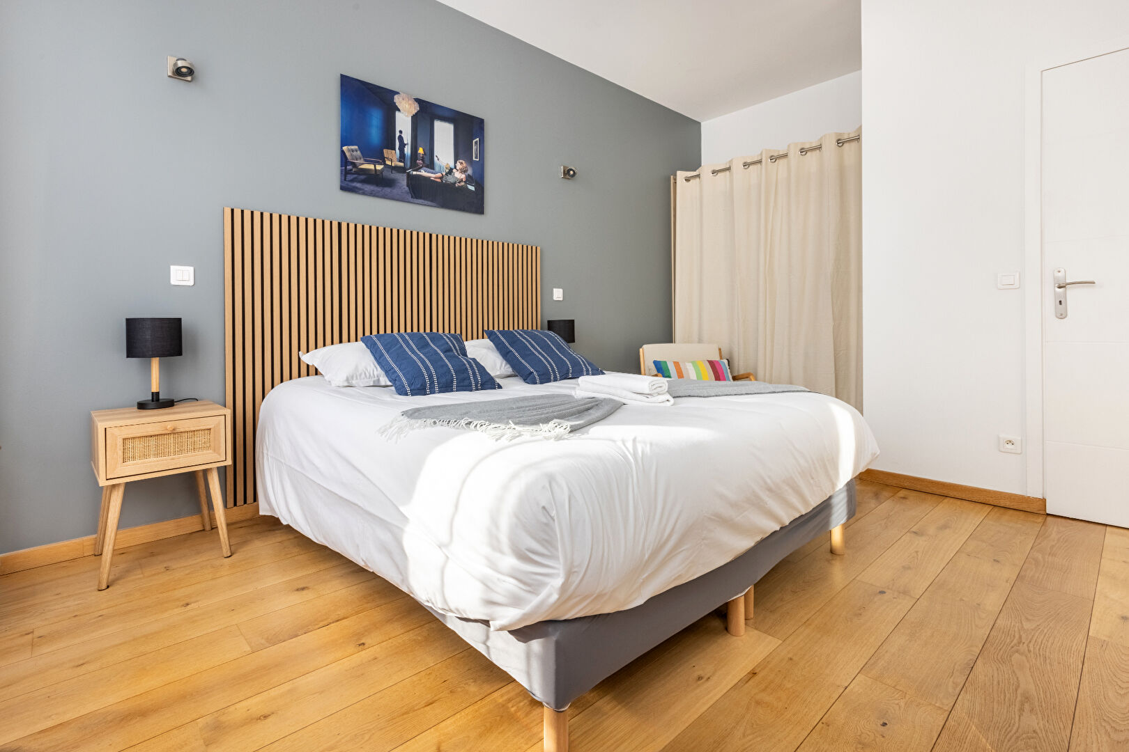 L'espace nuit, bien séparé, propose un coin chambre confortable avec rangements, ainsi qu'une salle de bain de qualité.