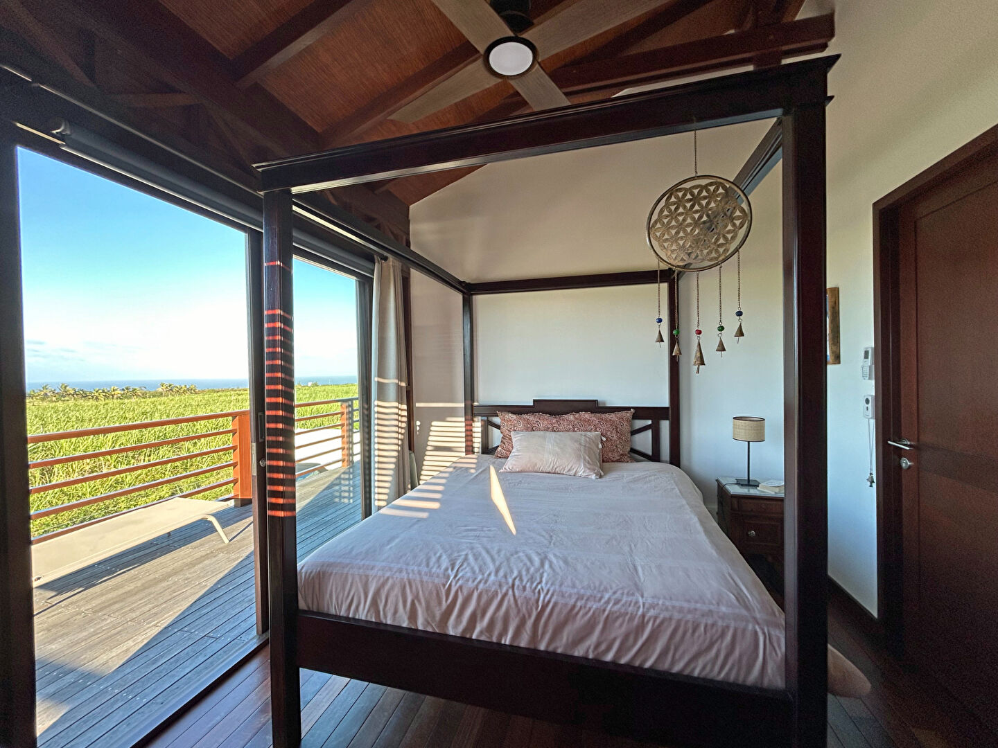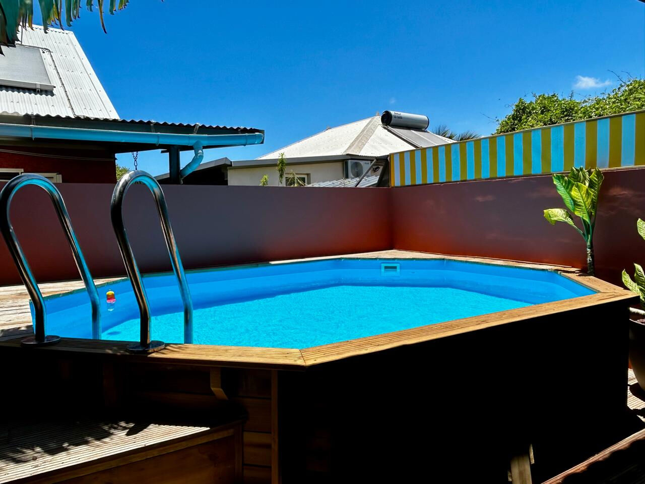 Elle se compose d'une maison principale avec deux chambres, une salle d'eau et une grande pièce de vie avec cuisine aménagée et équipée, une grande varangue, une piscine et douche extérieure.