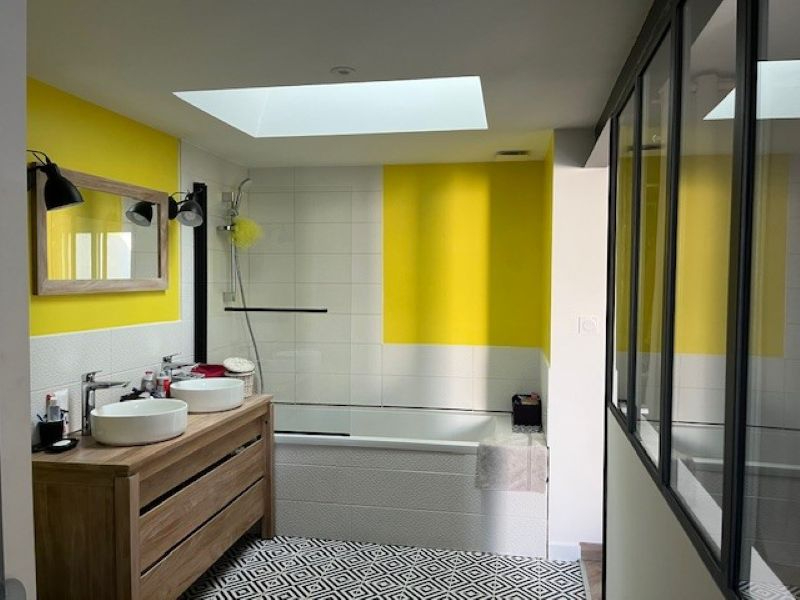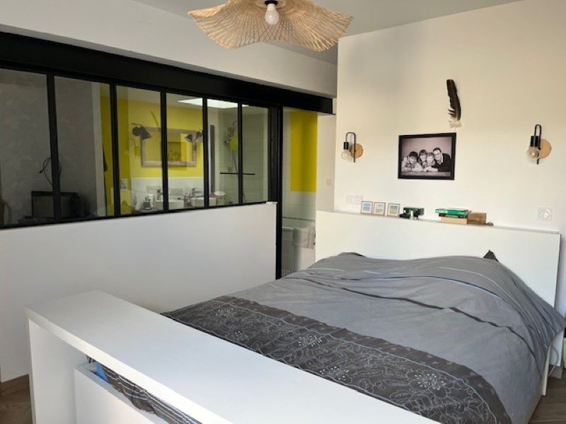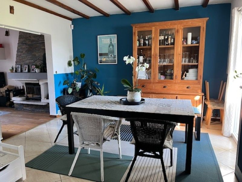 Elle comprend un séjour, un salon, une cuisine aménagée, un cellier, un wc, un espace parental avec chambre, dressing, salle de bains et bureau donnant sur un patio. A l'étage, les enfants auront leur espace : 3 chambres sur parquet, une salle d'eau et un wc.