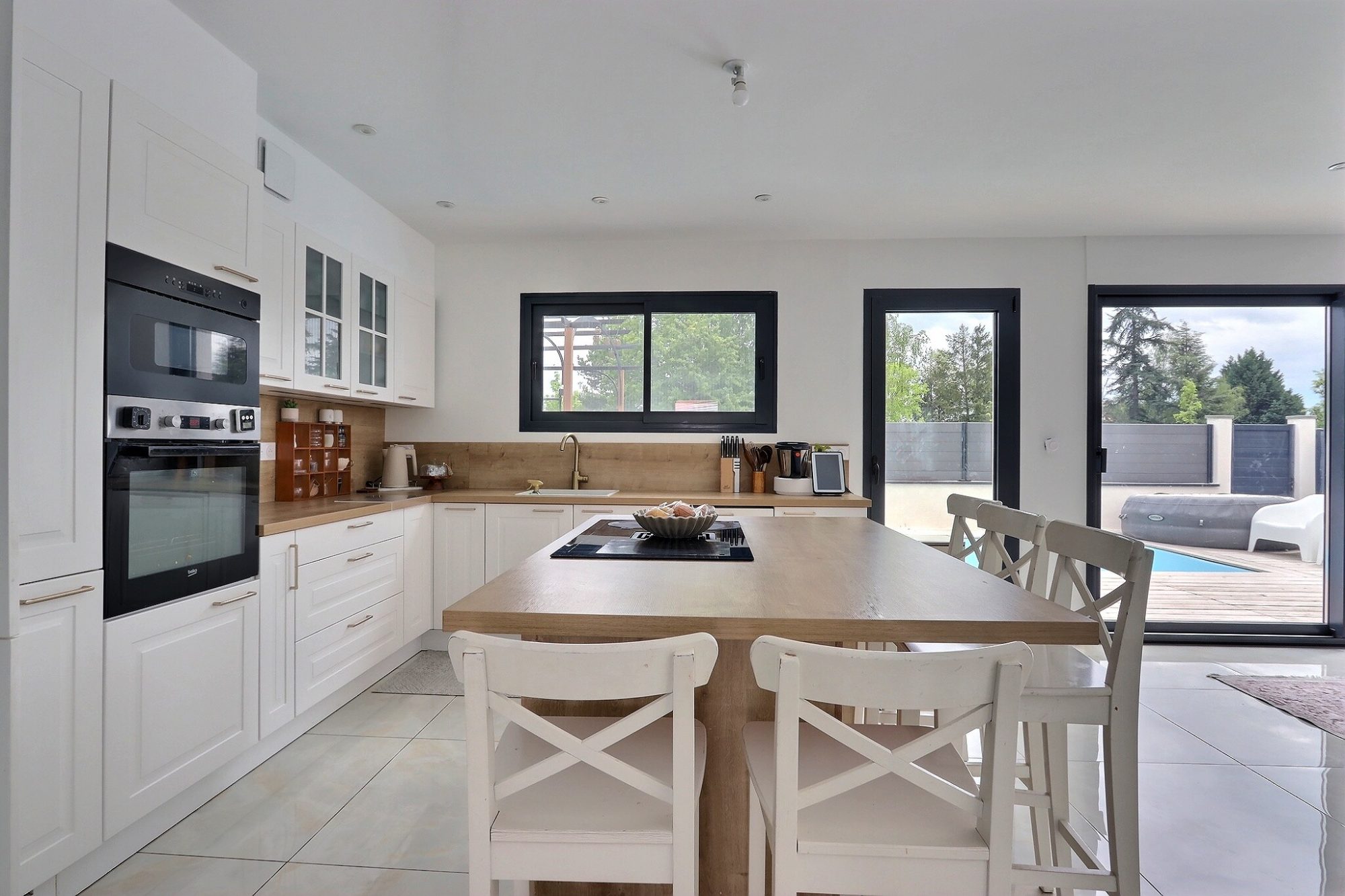 EXCLUSIVITE AULNAT LIMITE CLERMONT-FERRAND , trés belle villa récente de 2022 avec beaux volumes comprenant une grande pièce de vie ( 58 m²) avec cuisine équipée ouverte donnant sur jardin, terrasse et piscine , grande arrière cuisine, à l'étage une suite parentale avec dressing et salle d'eau privative donnant sur balcon ( 9 m²) , trois chambres avec placards dont une donnant sur une terrasse de 34 m² , salle de bains, lingerie . garage , terrasses, jardin entièrement clos , piscine 6m x 2,5 m avec coin barbecue aménagé, trés bonne isolation, chauffage pompe à chaleur air/ eau + climatisation , DPE A, pas de travaux prévoir, prestations de qualité , maison soignée.