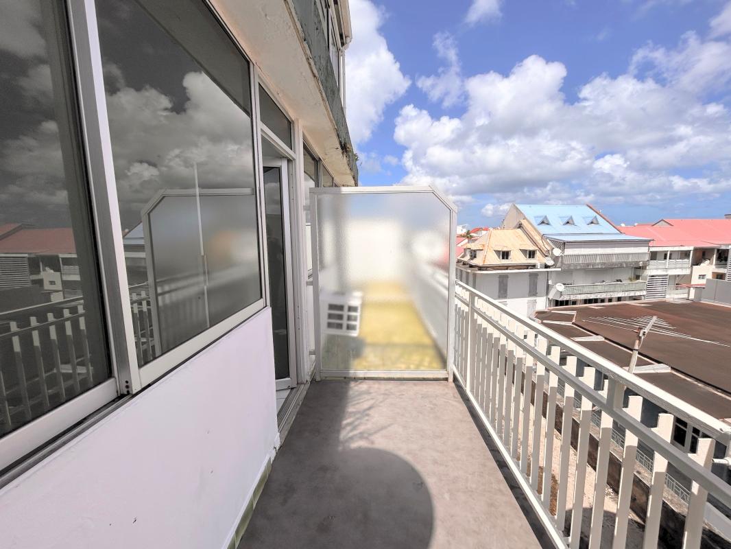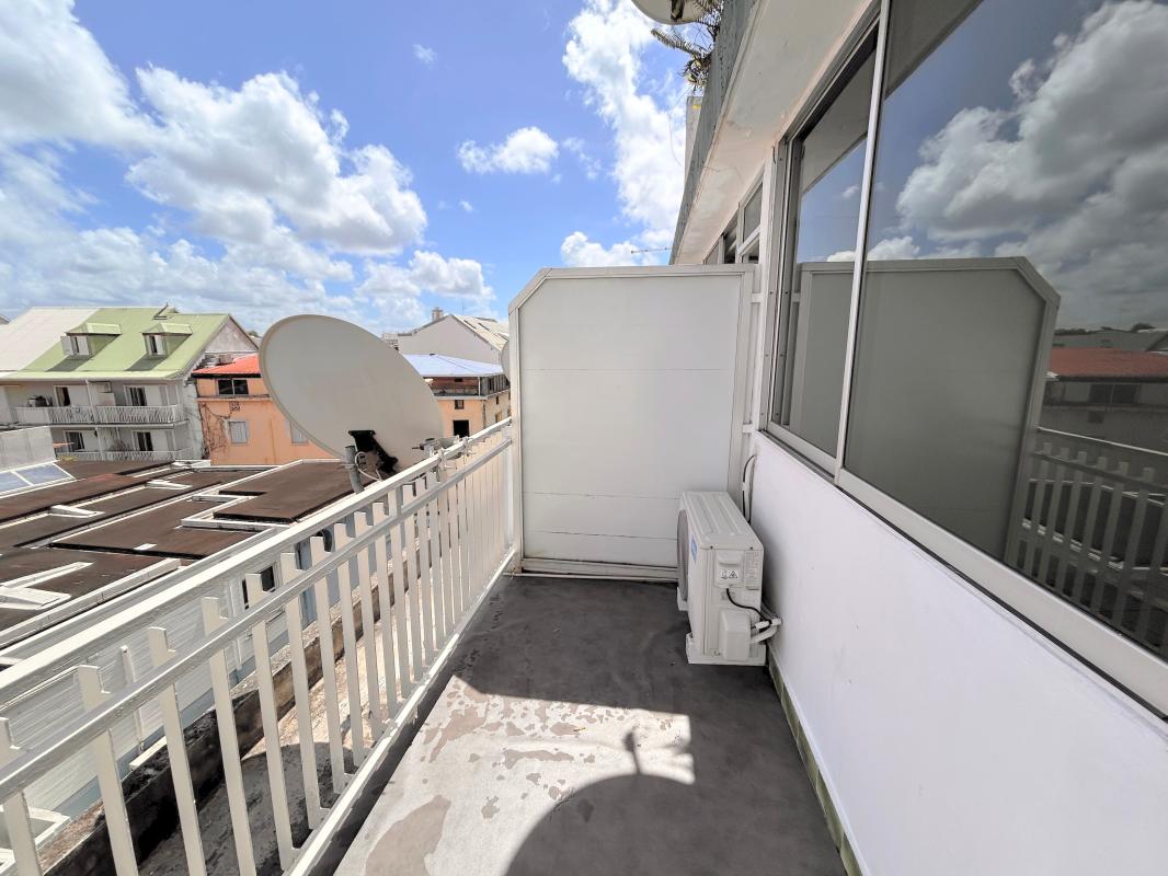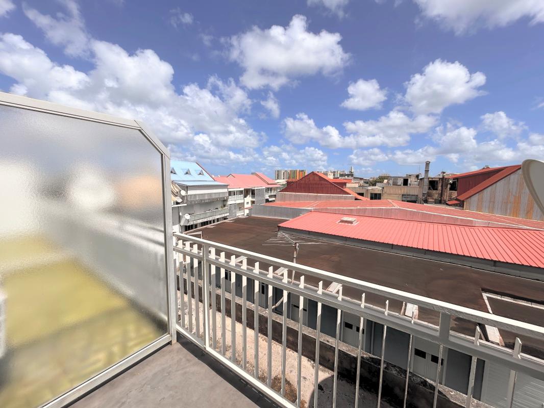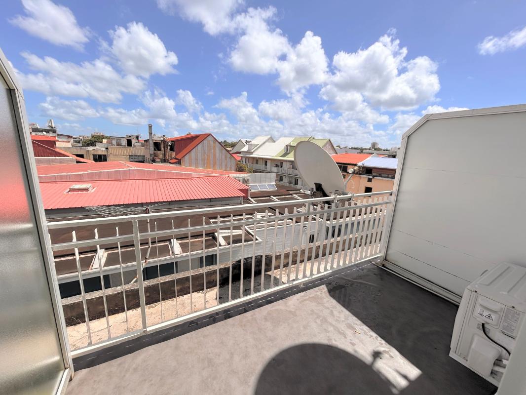 À l'extérieur, le balcon de 4,65 m² constitue un vrai plus : il offre une vue dégagée sur le quartier et les toits du centre-ville, permettant de profiter d'un espace extérieur agréable tout en dominant l'animation urbaine. Un élément particulièrement apprécié en location, qui apporte luminosité et sensation d'espace.