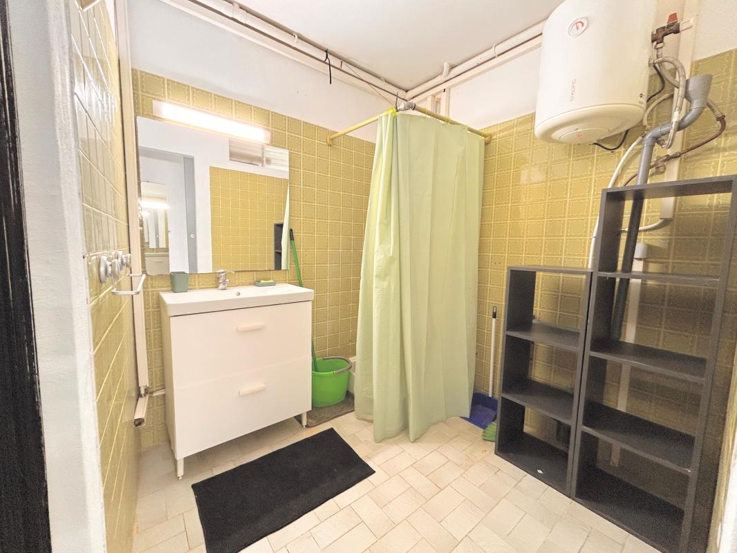 La pièce principale bien agencée comprend une kitchenette fonctionnelle, idéale pour une location meublée ou saisonnière. Le logement dispose également d'une salle d'eau et de WC séparés, un véritable atout pour optimiser le confort au quotidien.