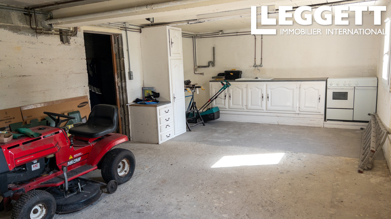 Le grand sous-sol de 100 m² abrite la chaufferie, une cave, une pièce de stockage et un garage de 31 m² avec une cuisine d'été.