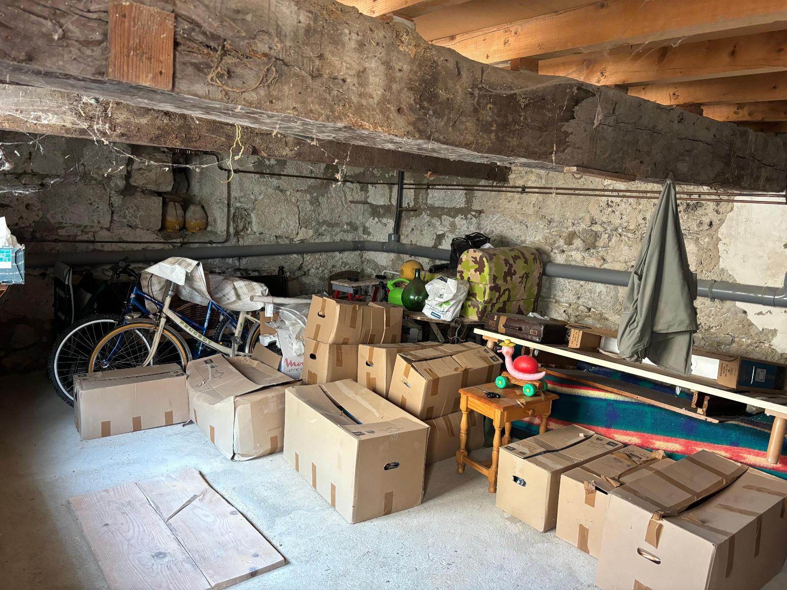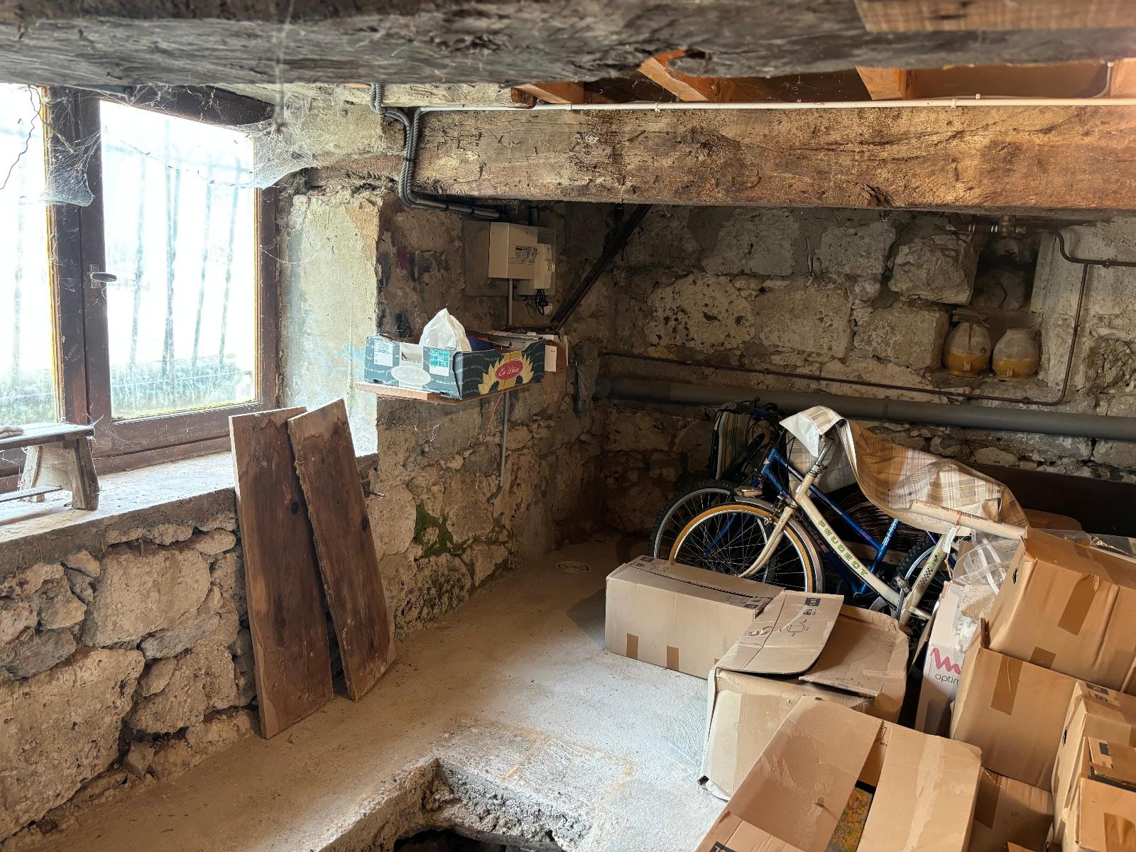 Au rez-de-chaussée, accessible depuis la rue du Faubourg par une porte en bois, se trouve une dépendance d'environ 22m2 avec poutres apparentes au plafond. Autre atout rare : un puits intérieur.